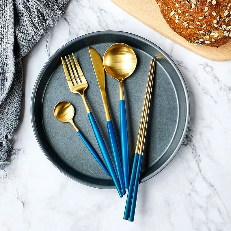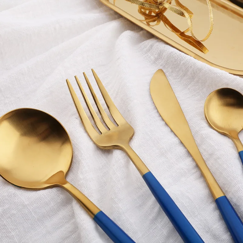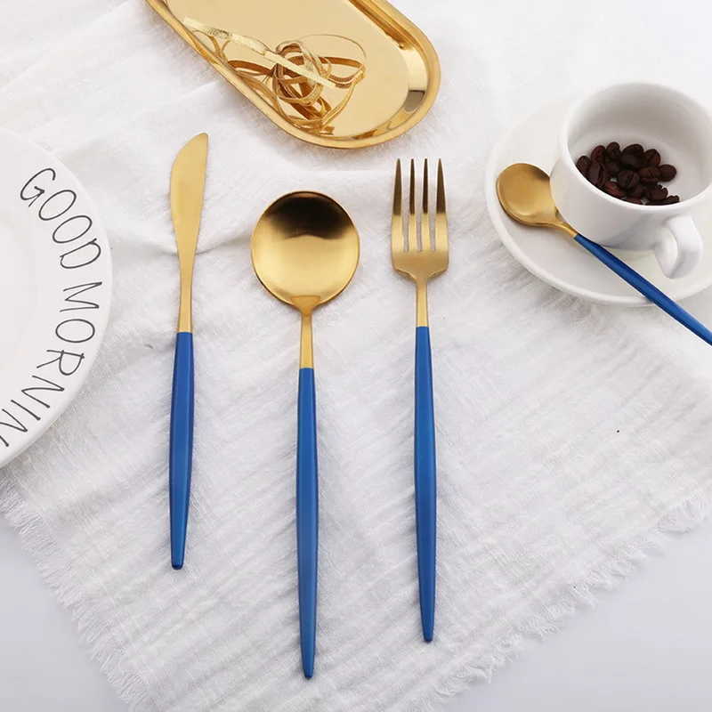 Hoomall Royal Blue Stainless Steel Dinnerware Set European Style Cutlery Dinner Set Table Party Kitchen Tableware Drop Shipping