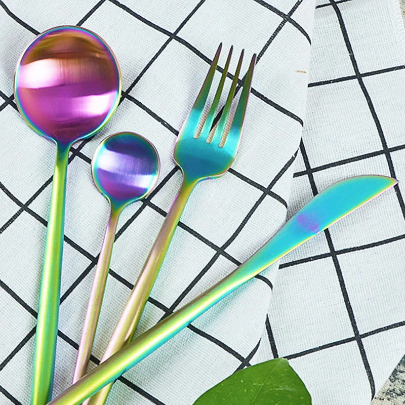 Hoomall Stainless Steel Rainbow Cutlery Dinner Set Western Style Kitchen Food Cutlery Tableware Dinnerware Set Christmas Gift