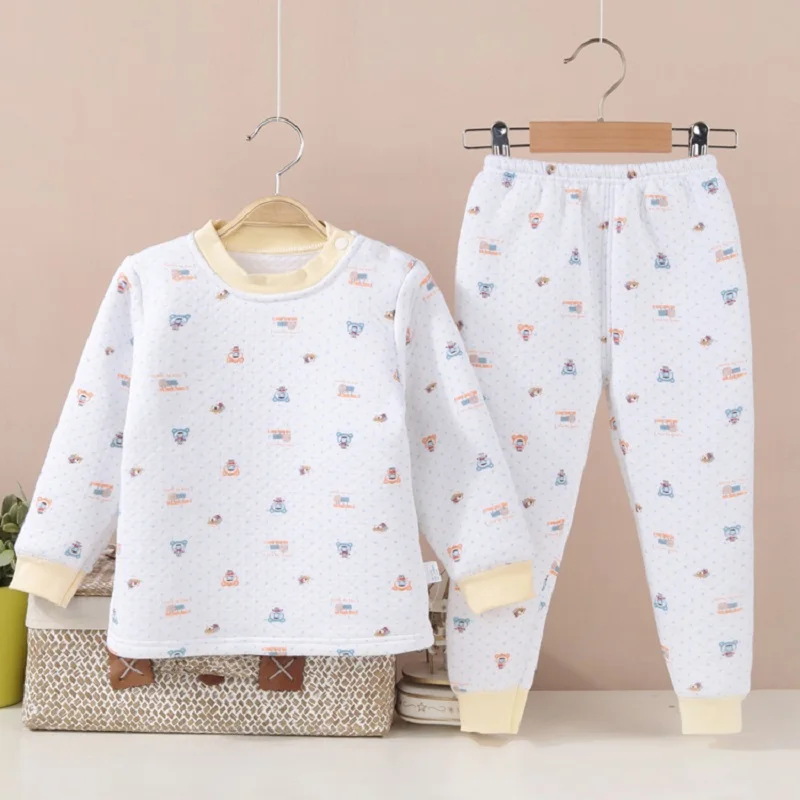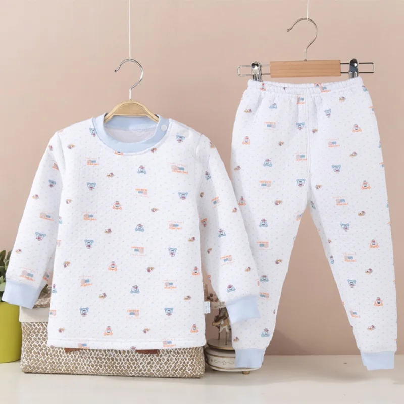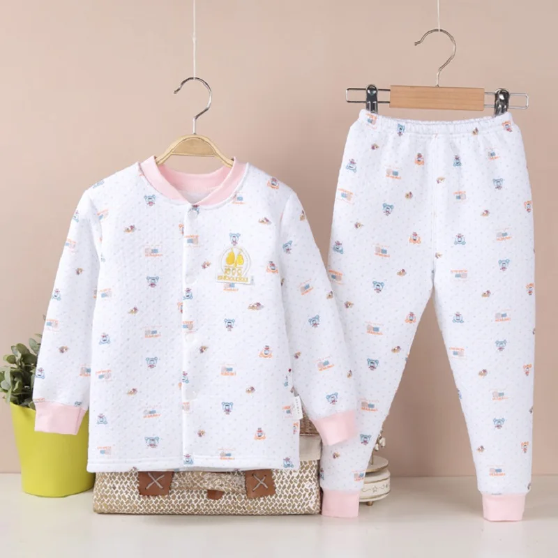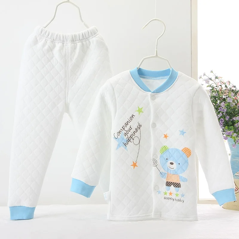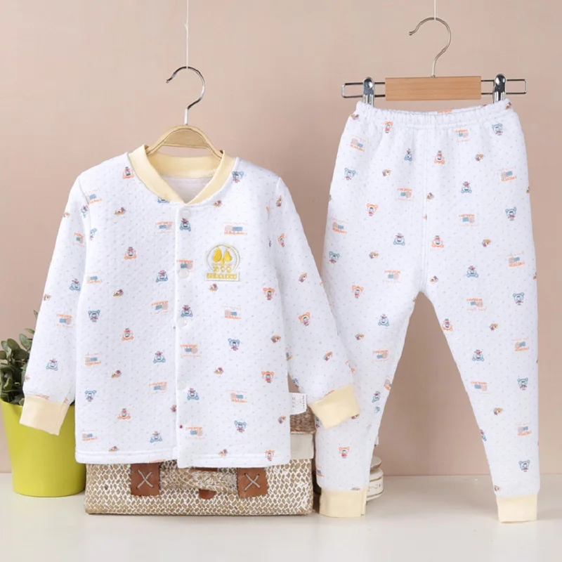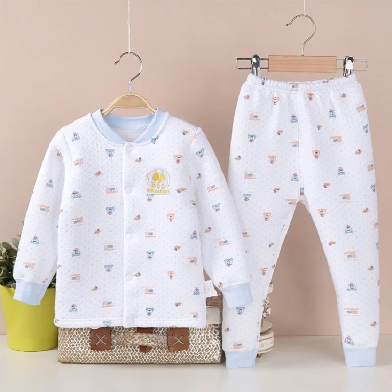 Hooyi Winter Baby Sleeping Clothes Suits Children Pajamas Cardigan Trouser 3-Layer Warmmer Newborn Sweatshirt Pant Kid Nightgown