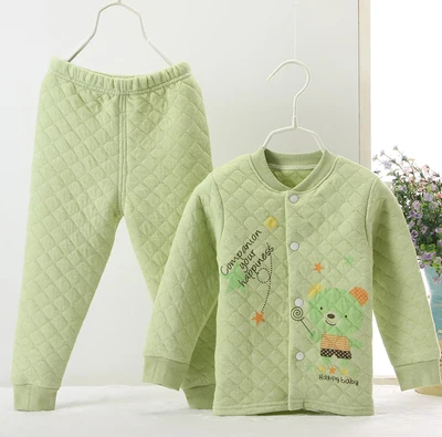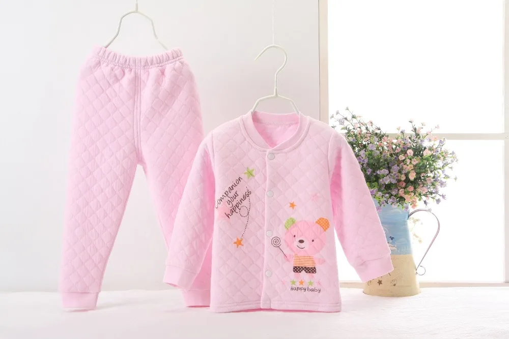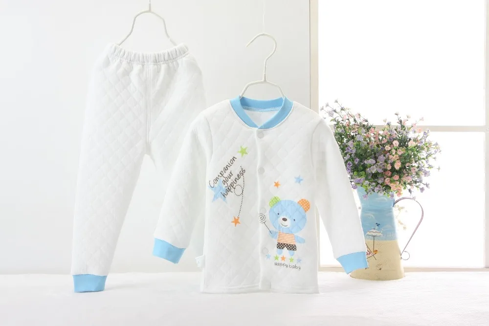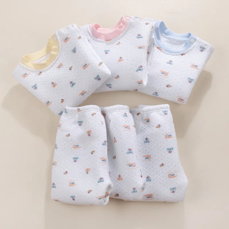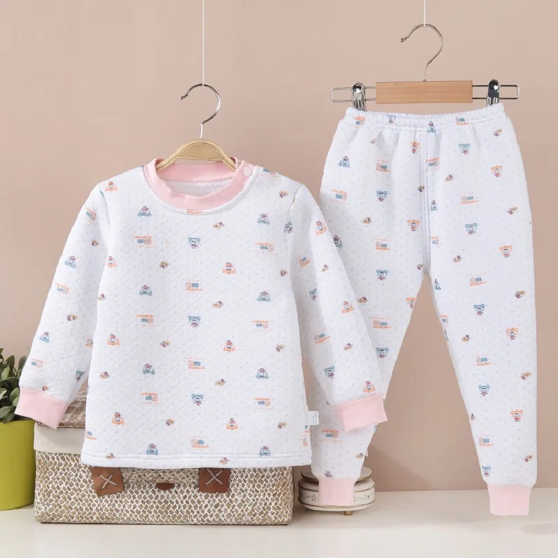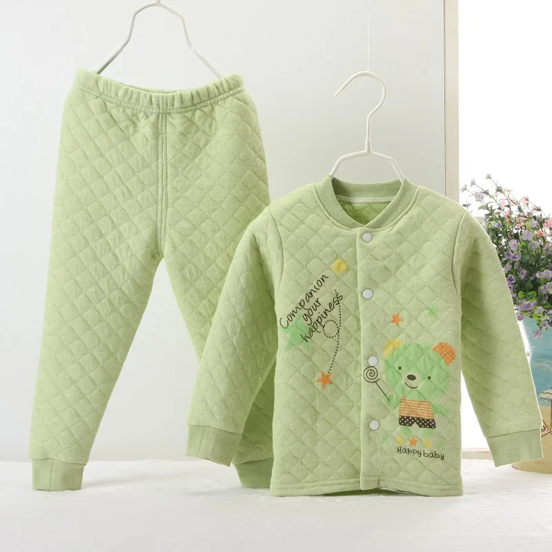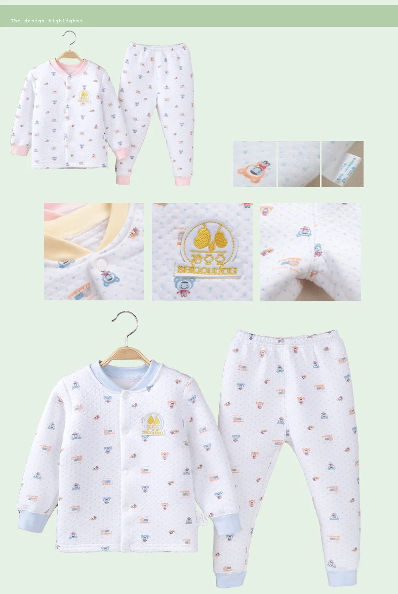 Hooyi Winter Baby Sleeping Clothes Suits Children Pajamas Cardigan Trouser 3-Layer Warmmer Newborn Sweatshirt Pant Kid Nightgown