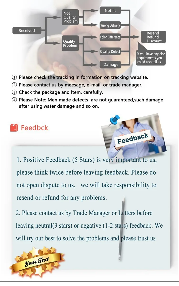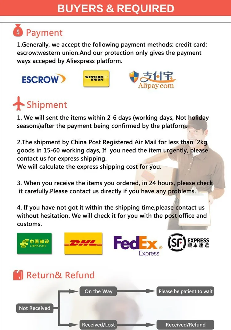 • If you did not receive the product within the guaranteed time( 45 days not including 2-5 day processing) you can request a refund or a reshipment.