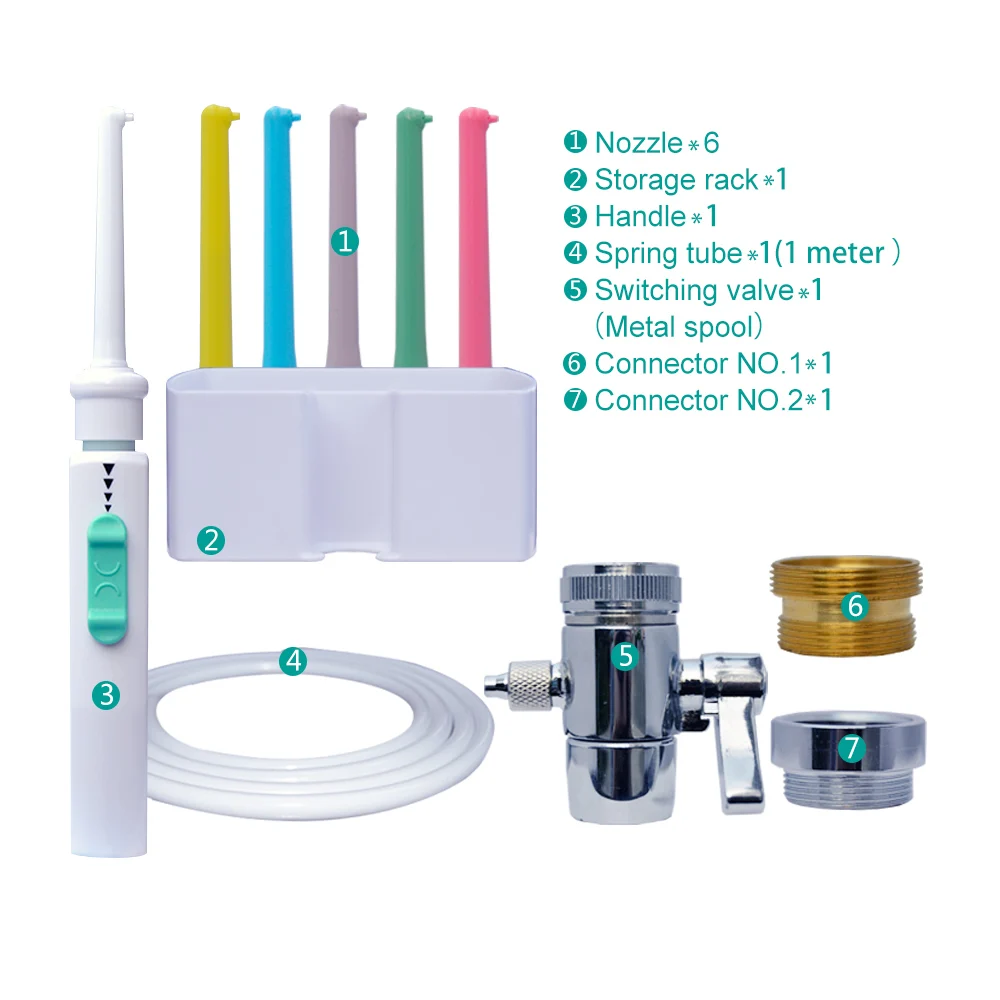 Hot 6pcs Tips Water Dental Flosser Switch Faucet Oral Irrigator Water Jet Floss Pick Implement Irrigation Tooth Cleaner SPA