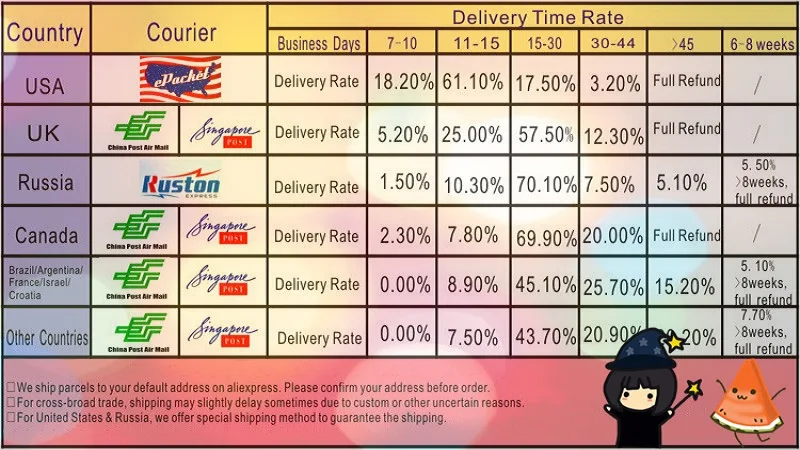• If you did not receive the product within the guaranteed time( 45 days not including 2-5 day processing) you can request a refund or a reshipment.