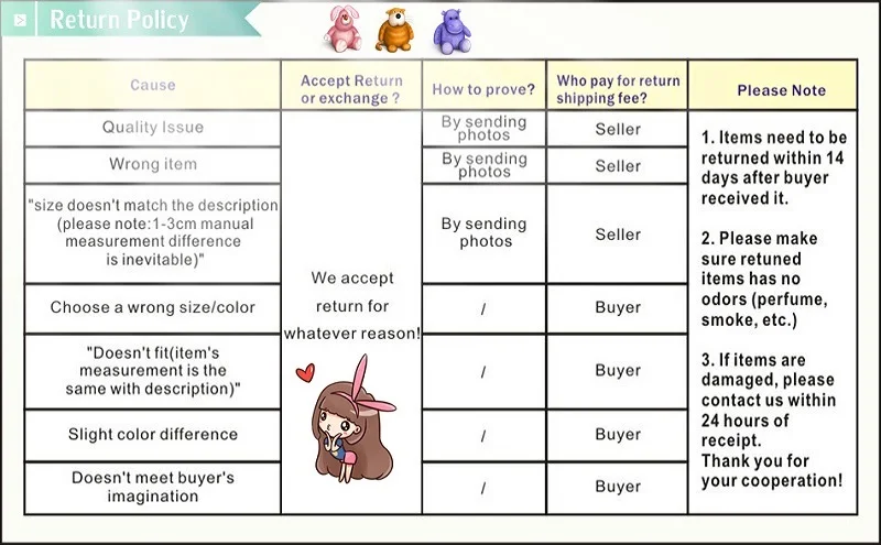 • If you do not want the product you’ve received you may request a refund but you must return the item at your expense and the item must be unused.