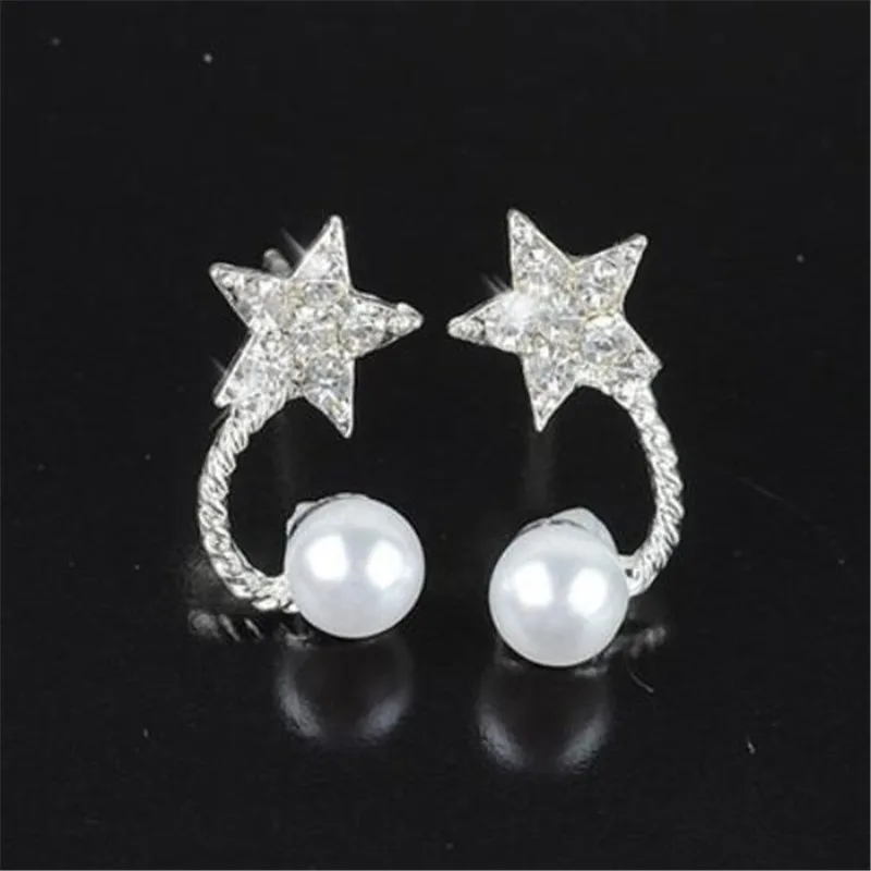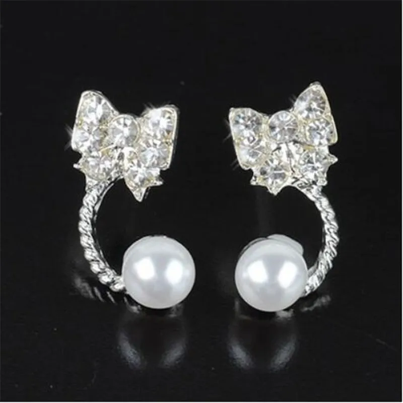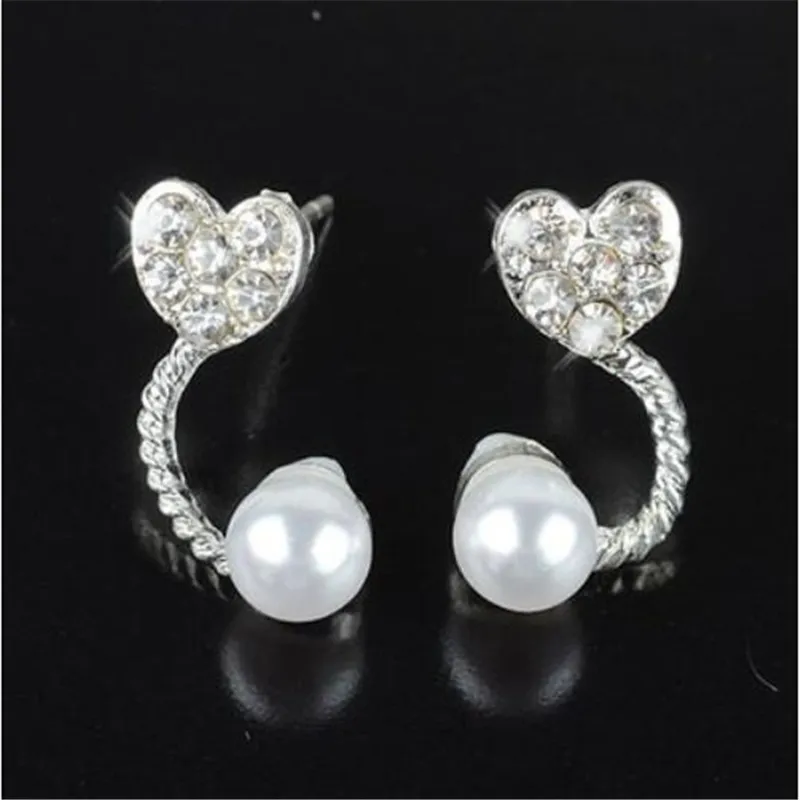 Hot Elegant Glamorous Crystal Pearl Earrings Jewelry Stud Earrings lovely heart for Women and Girls Free Shipping