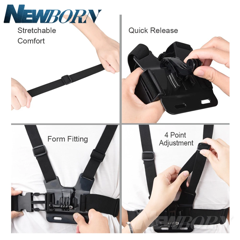 Keep your sports action camera attached to your chest, easy to capture immersive video and photo footage.