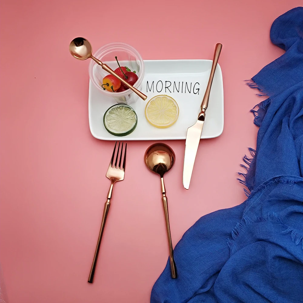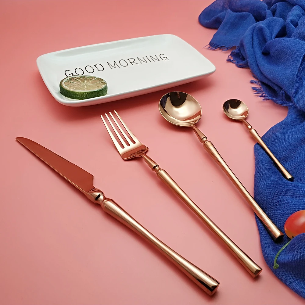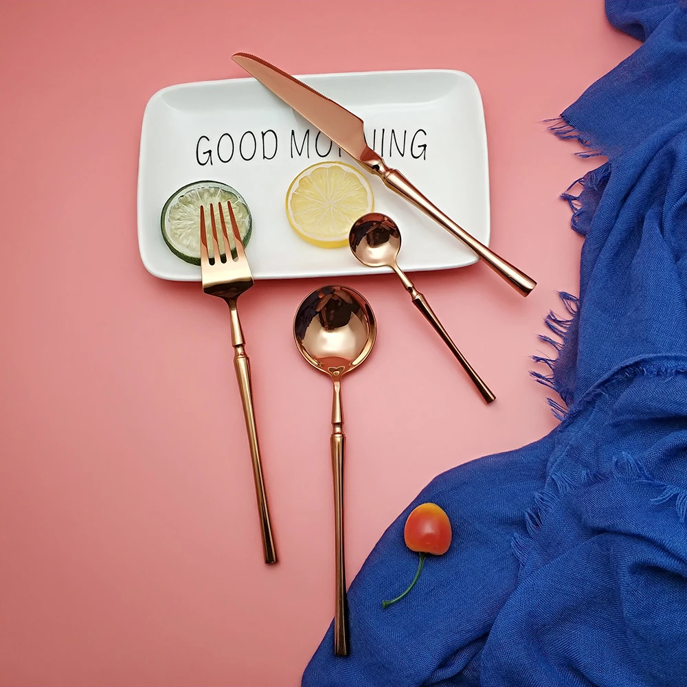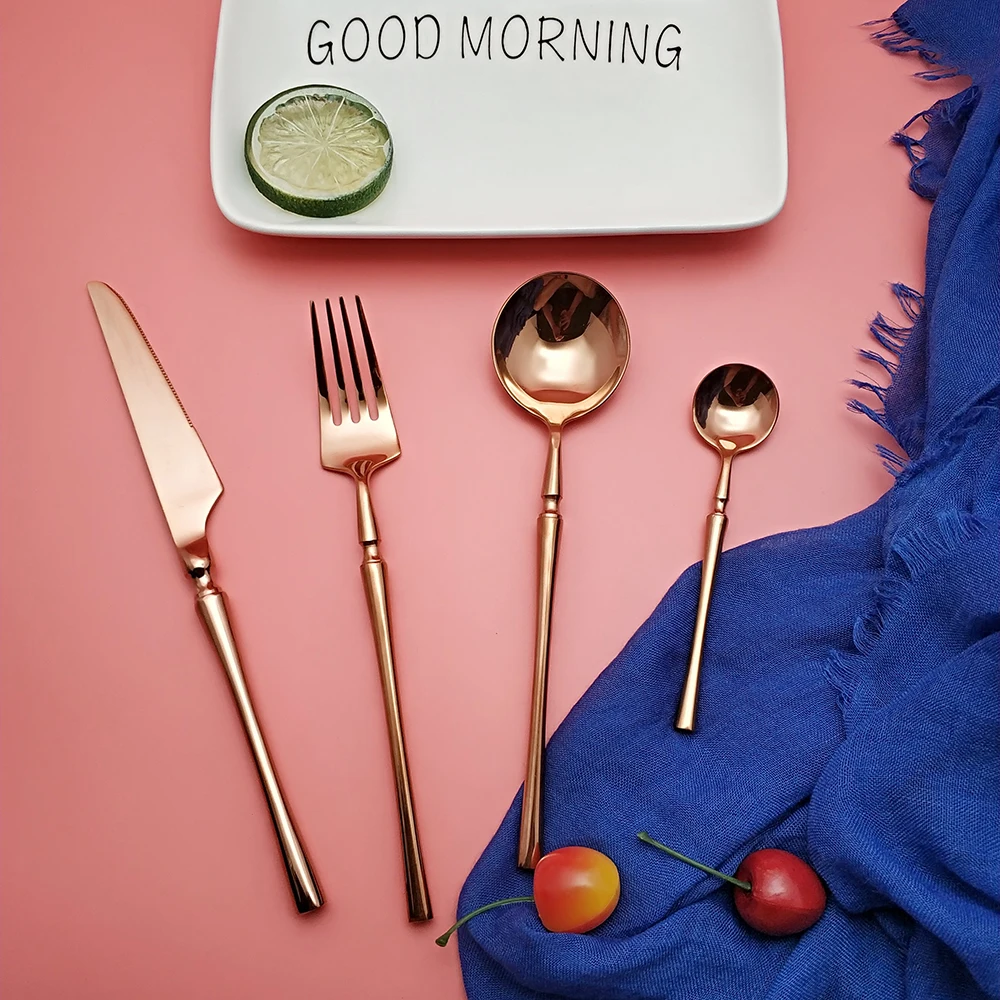 Hot Sale 4 Pcs Rose Gold Dinnerware knife spoon fork 304 Stainless Steel Western Cutlery Kitchen Food Tableware Dinner Set