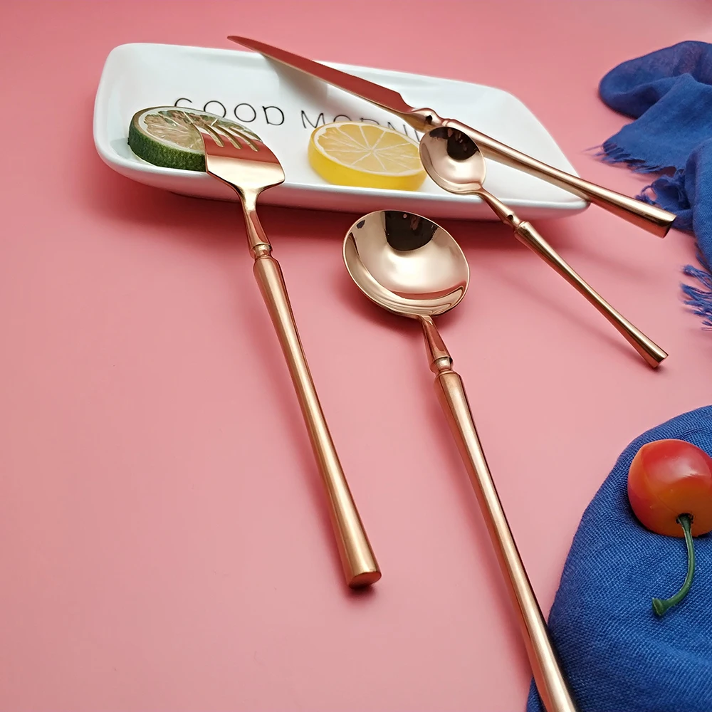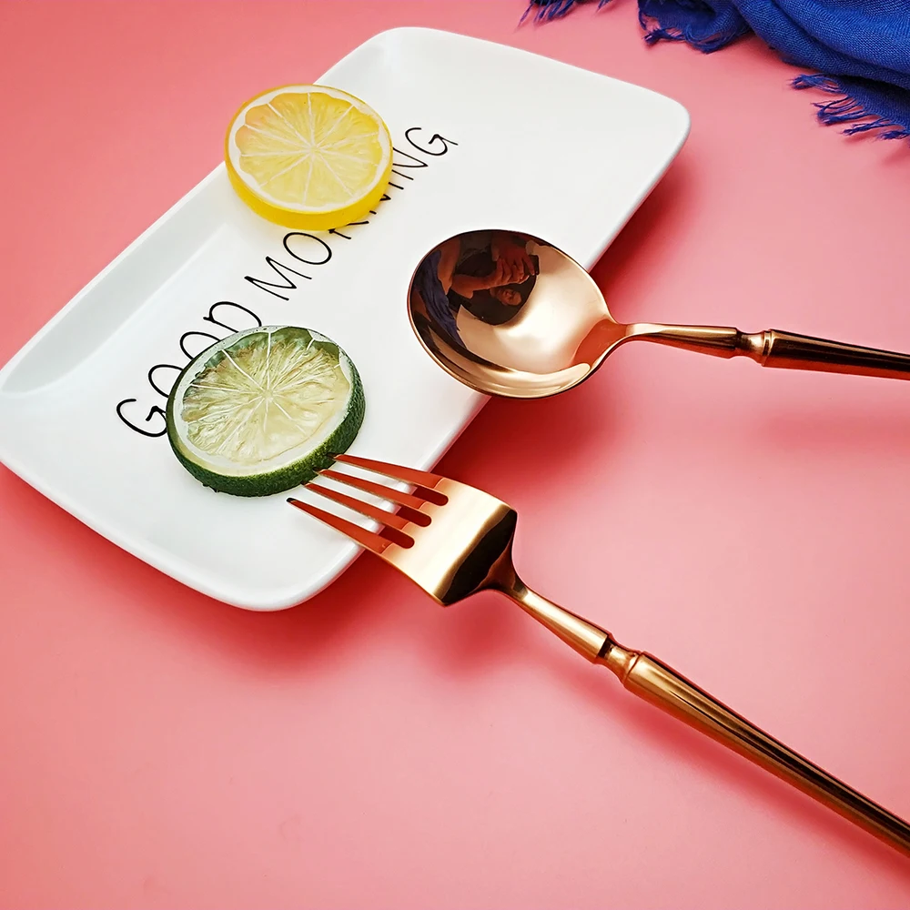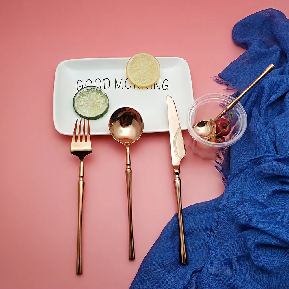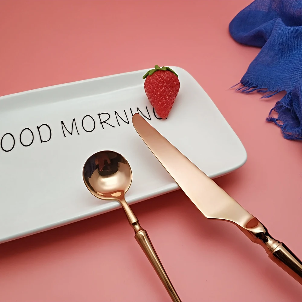 Hot Sale 4 Pcs Rose Gold Dinnerware knife spoon fork 304 Stainless Steel Western Cutlery Kitchen Food Tableware Dinner Set