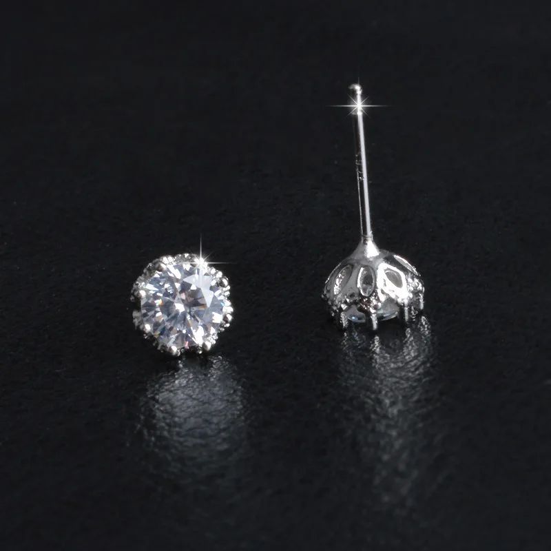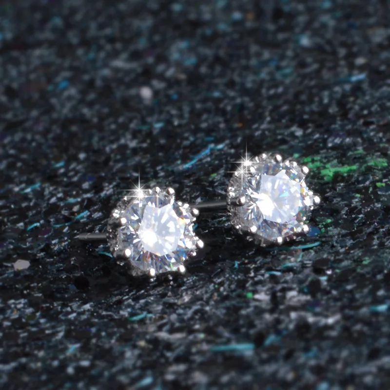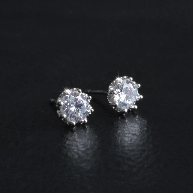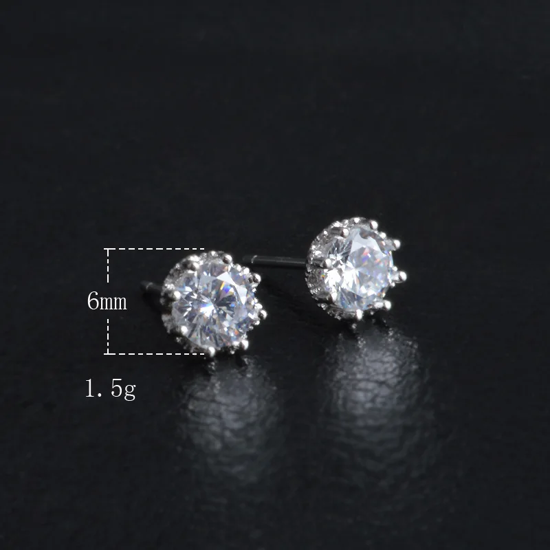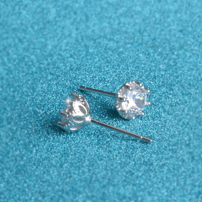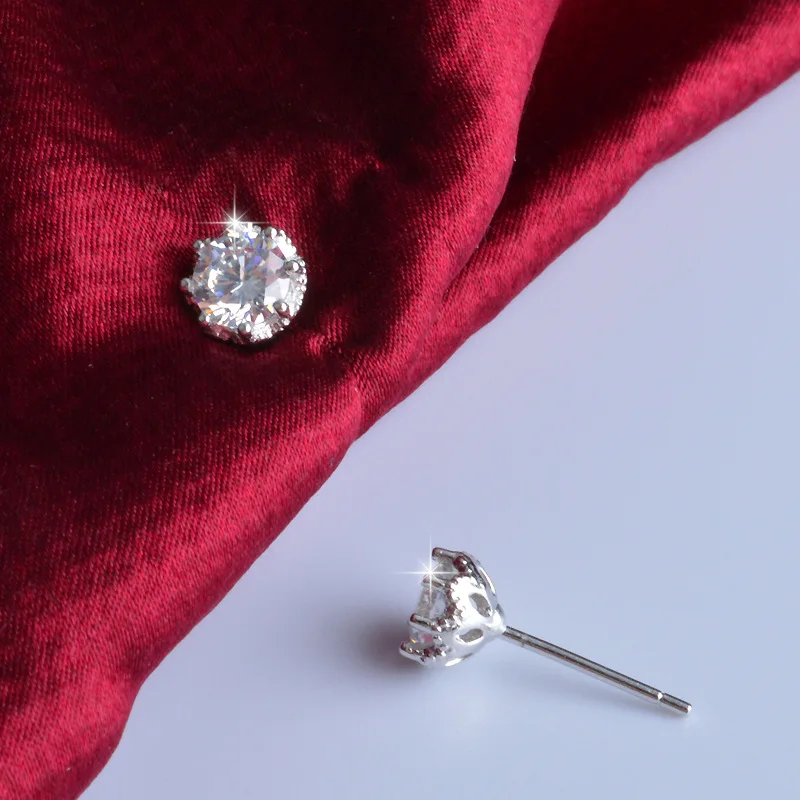 Hot Sale 925 Sterling Sliver Jewelry Elegant Stud Earrings For Wedding 6 claws AAA Cubic Zirconia Stone Earring