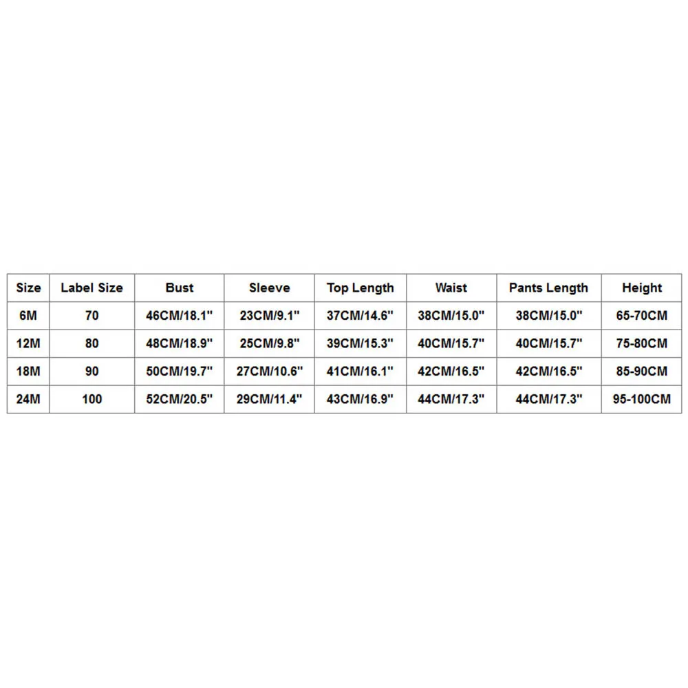 Size Label Size Bust Sleeve Top Length Waist Pants Length Height