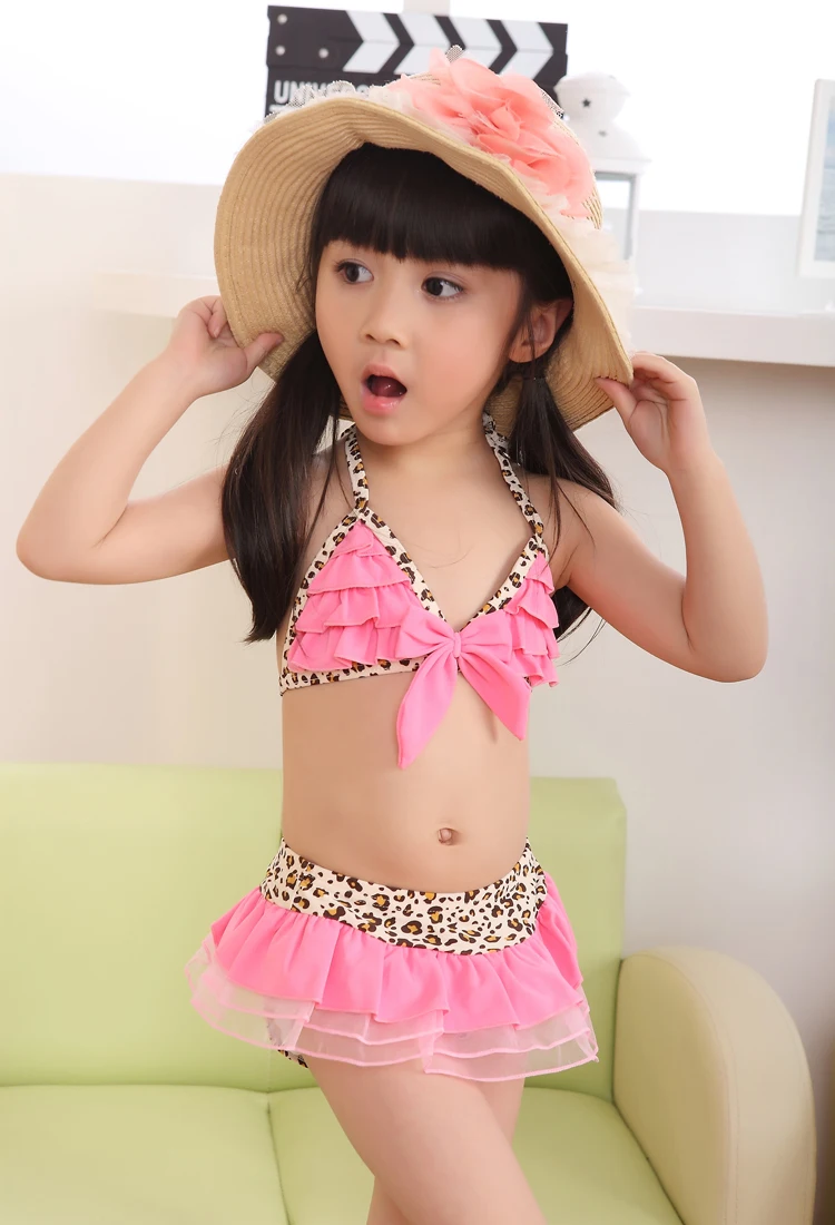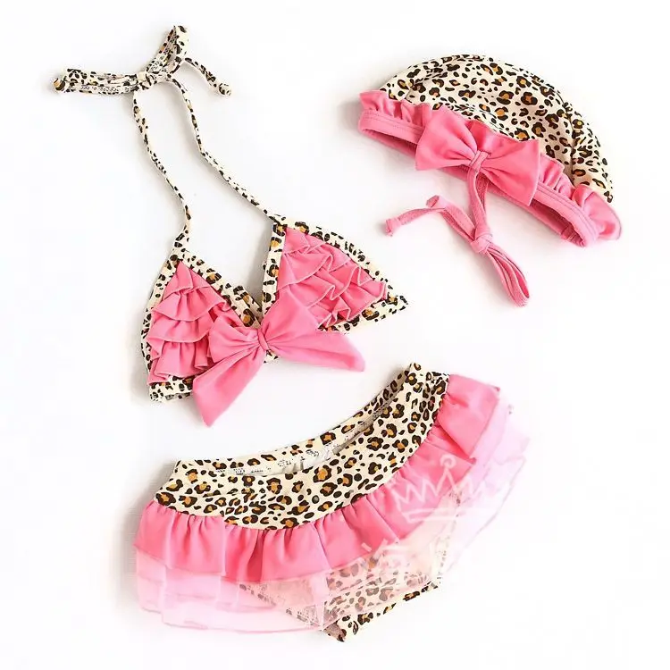 Hot Sale Children Swimwear Baby Girls Kids Pink Leopard Print Lovely Princess Bikini Two Pieces swimsuit Bathing suit Beachwear