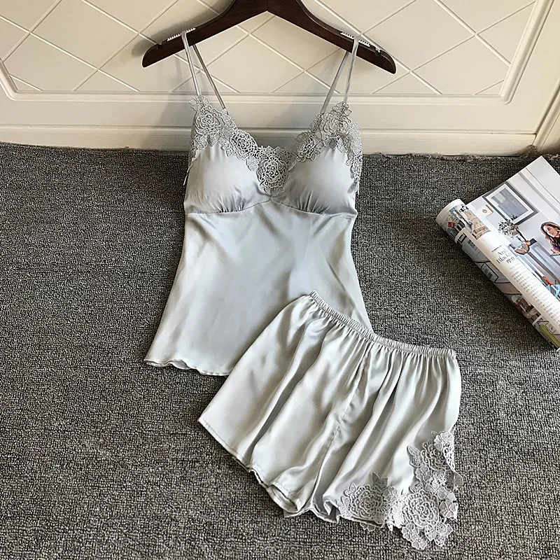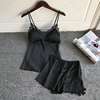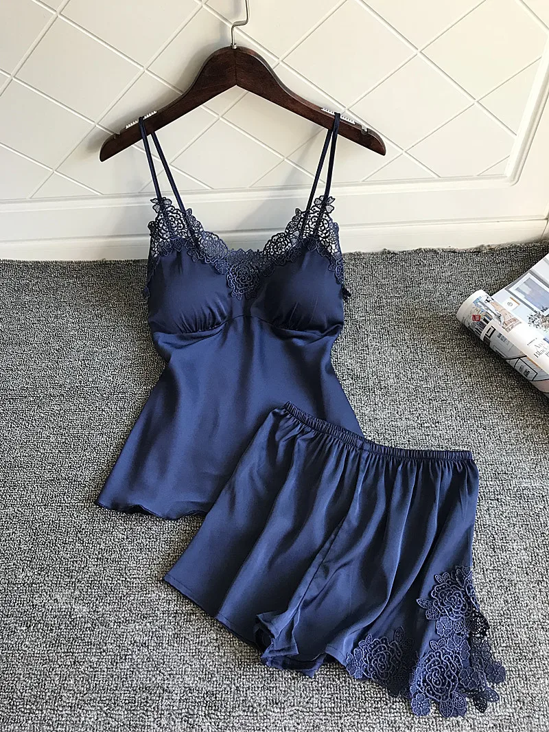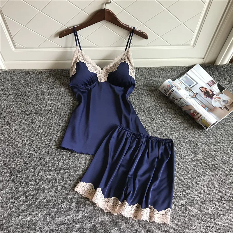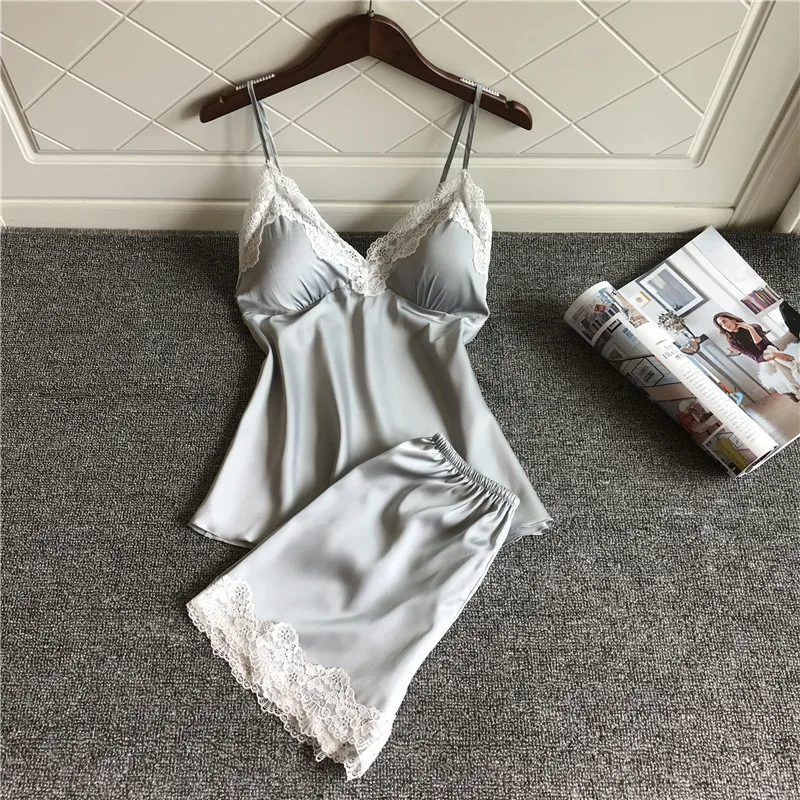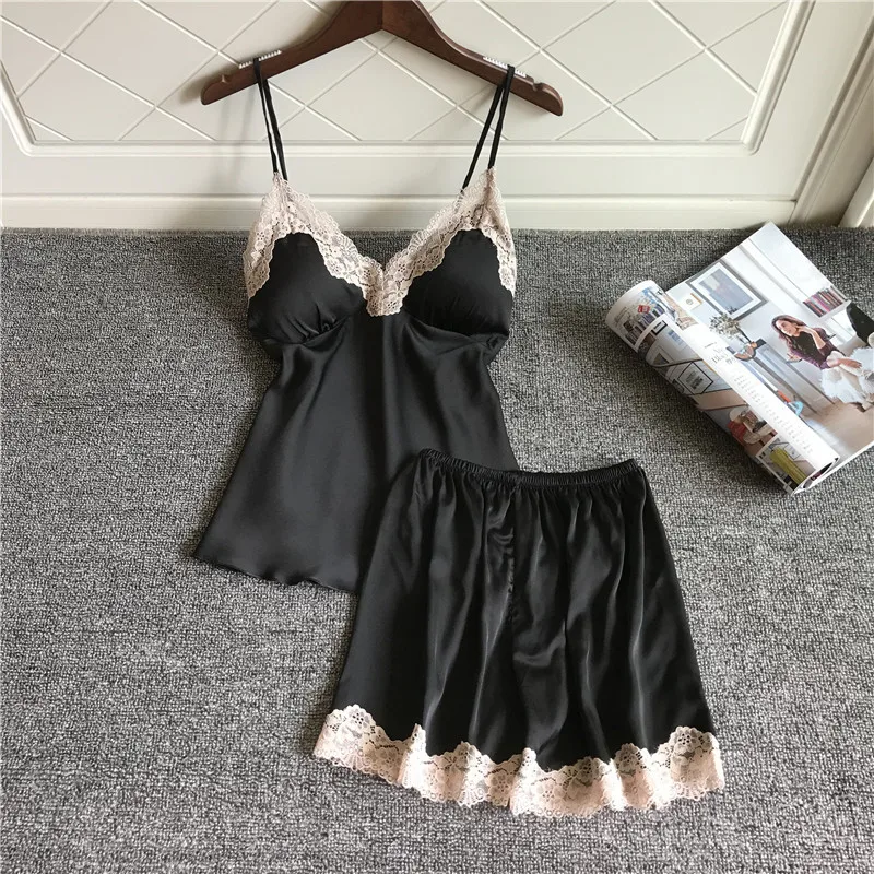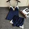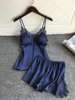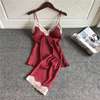 Hot Sale Ladies’ Sexy Satin Night Robe Dress Lace Strap Shirt&Shorts 2PCS Sleep Suit Sleepwear Nightwear For Women M L XL XXL