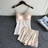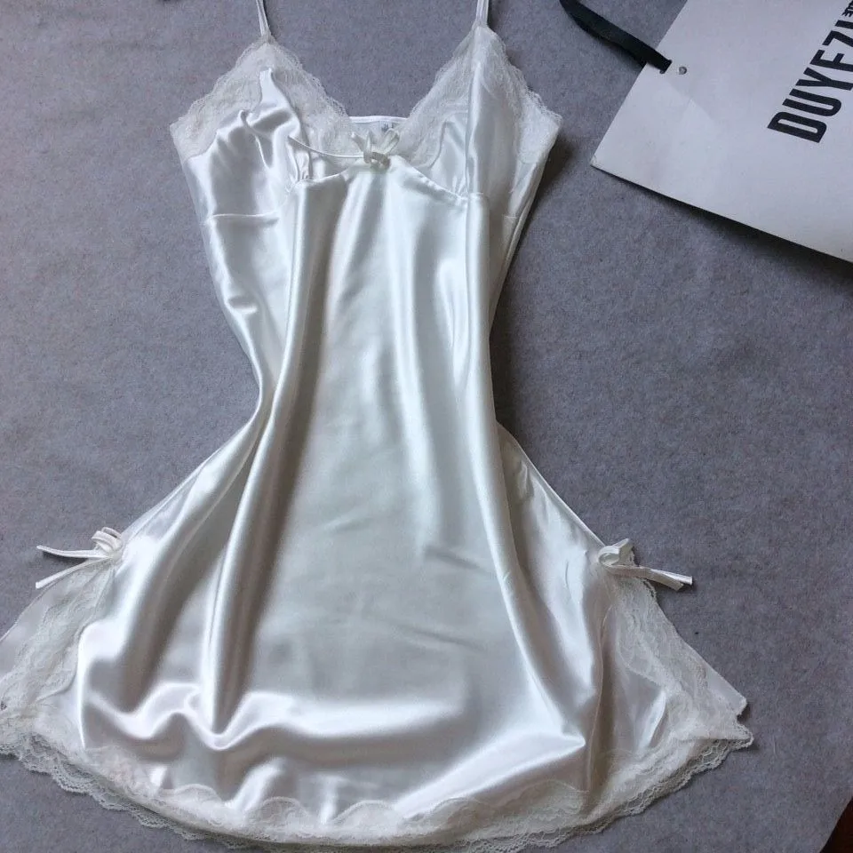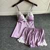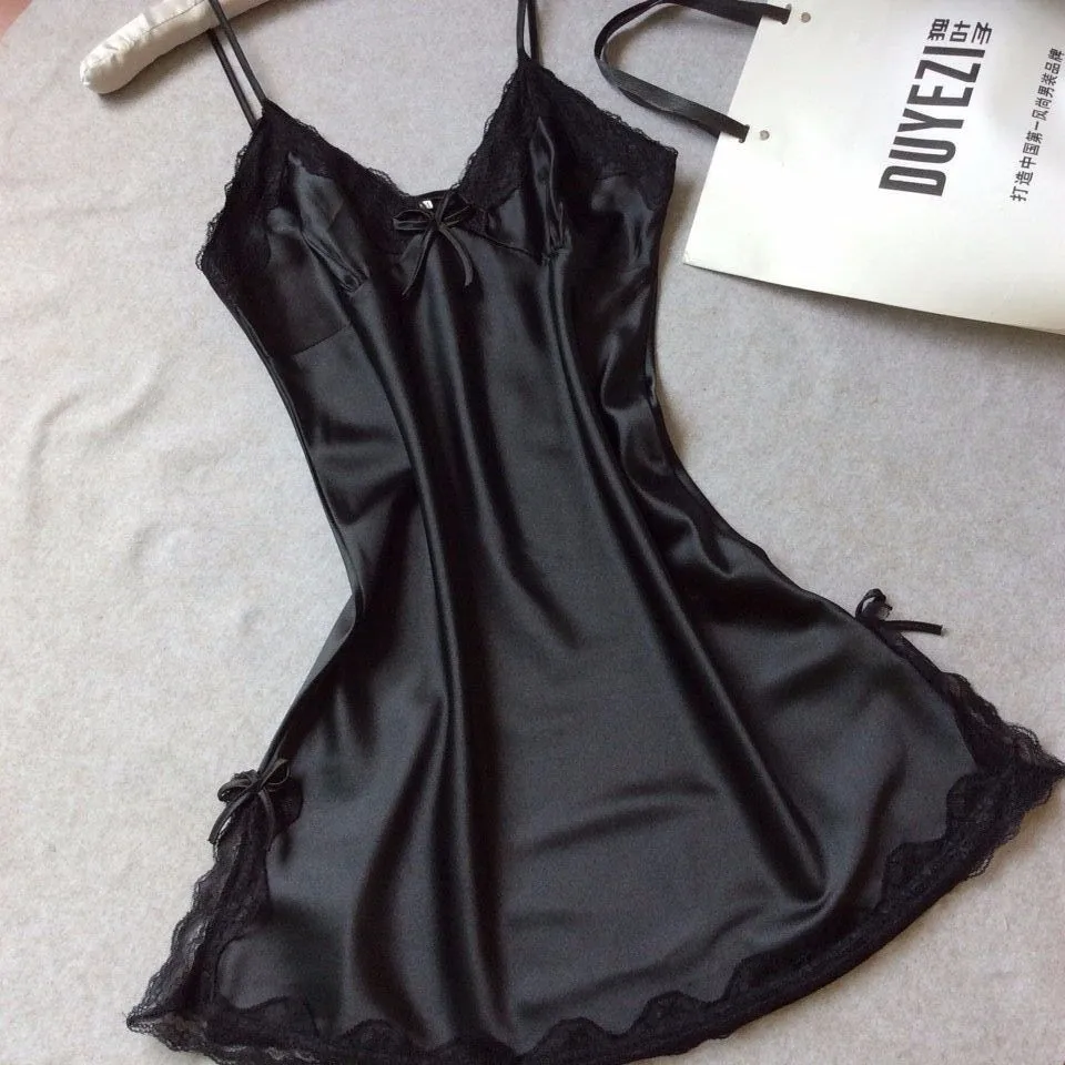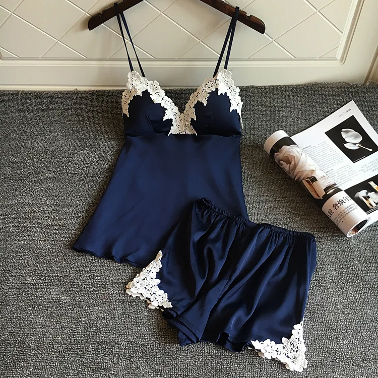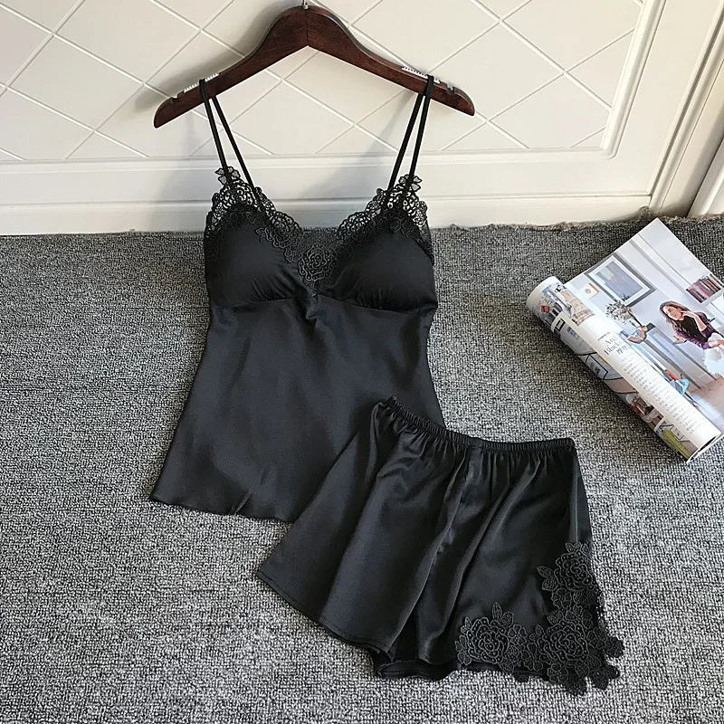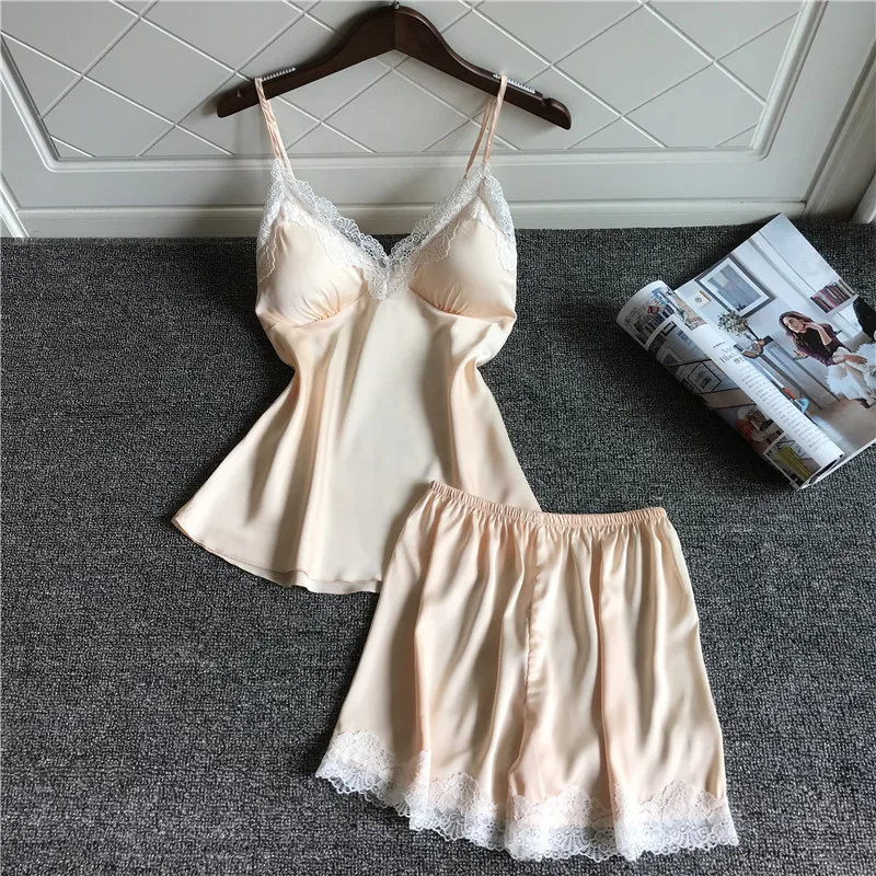 Hot Sale Ladies’ Sexy Satin Night Robe Dress Lace Strap Shirt&Shorts 2PCS Sleep Suit Sleepwear Nightwear For Women M L XL XXL