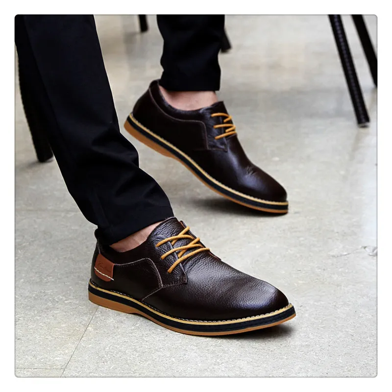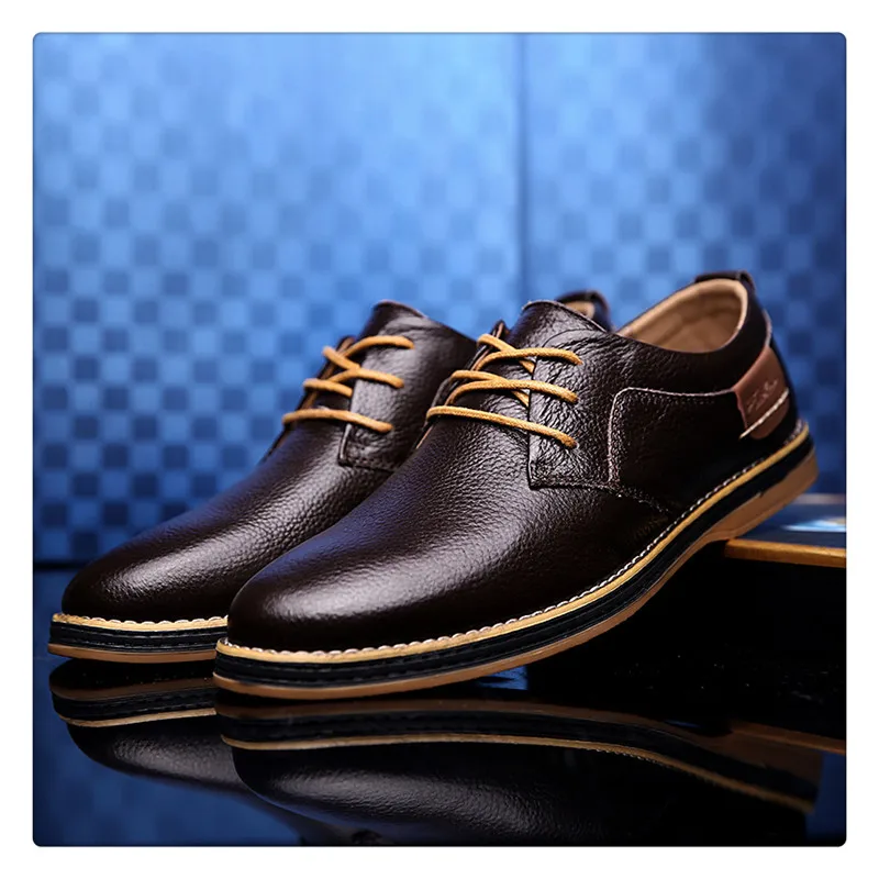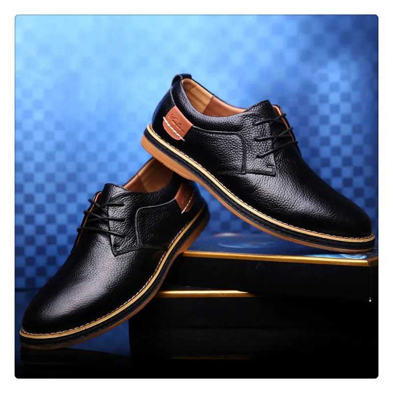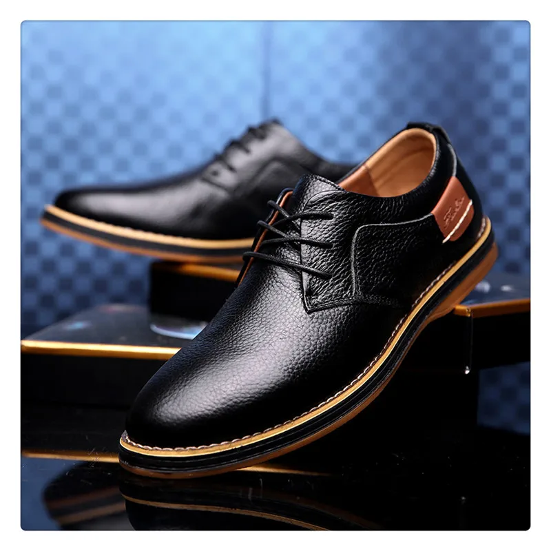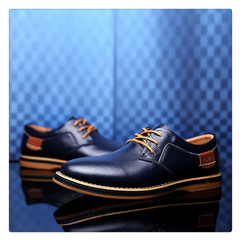 Hot Sale Men Fashion Leather Shoes Size 38-44 Casual Style Man Lace Up Oxfords For Party Wedding Black Blue Brown