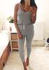 Hot Sale Summer Low Cut Rompers Womens Jumpsuit Black Elastic Waist Sleeveless Long Pants Playsuit Strap Pocket Overalls