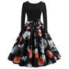 Hot Sale Vintage Women 2018 Halloween Pumpkin dress Head Vintage Printing Long Sleeve Flare Dress
