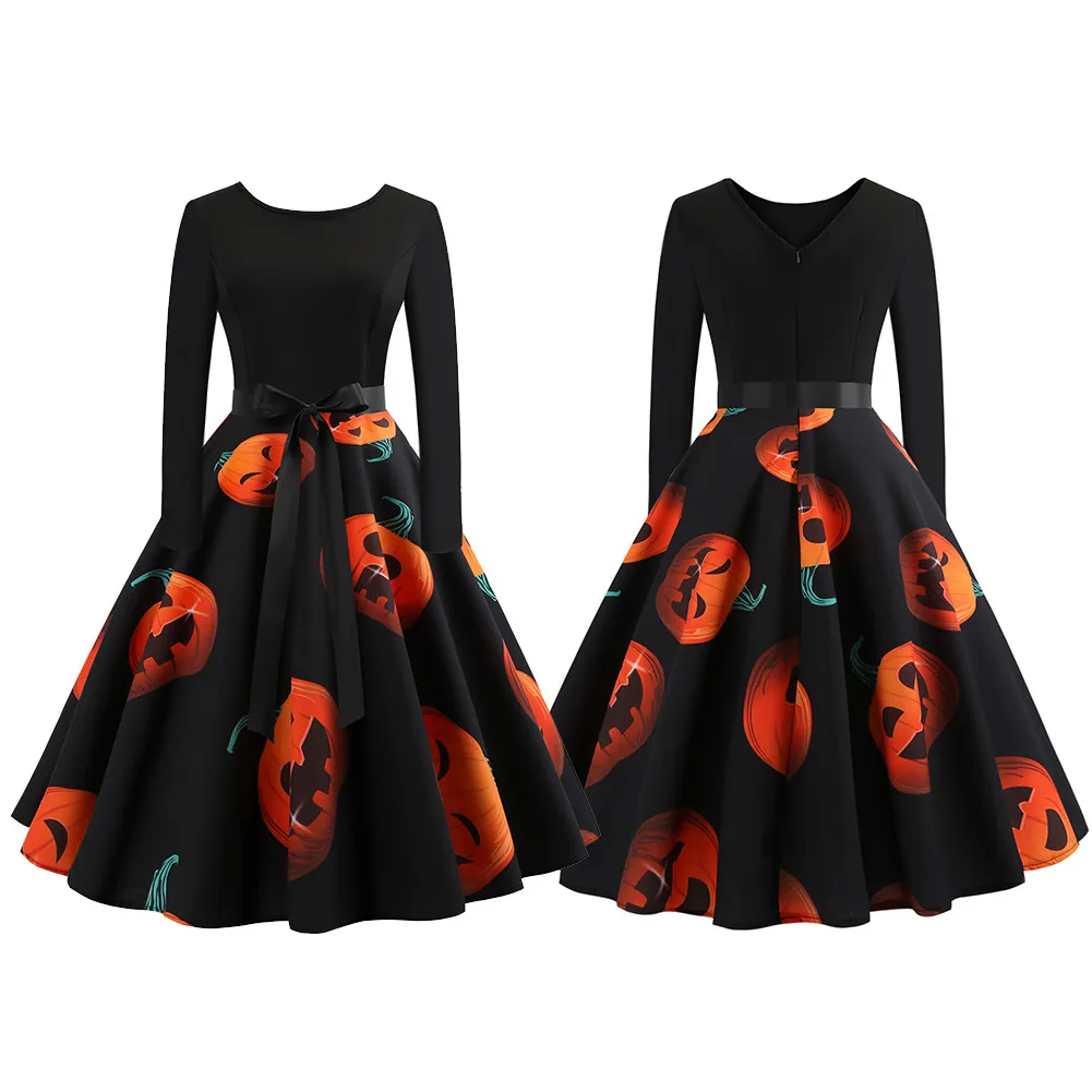 This Halloween pumpkin head printing vintage dress made of high-grade fabric feels comfortable and delicate. It is a perfect version type for Halloween and all kinds of casual occasions!