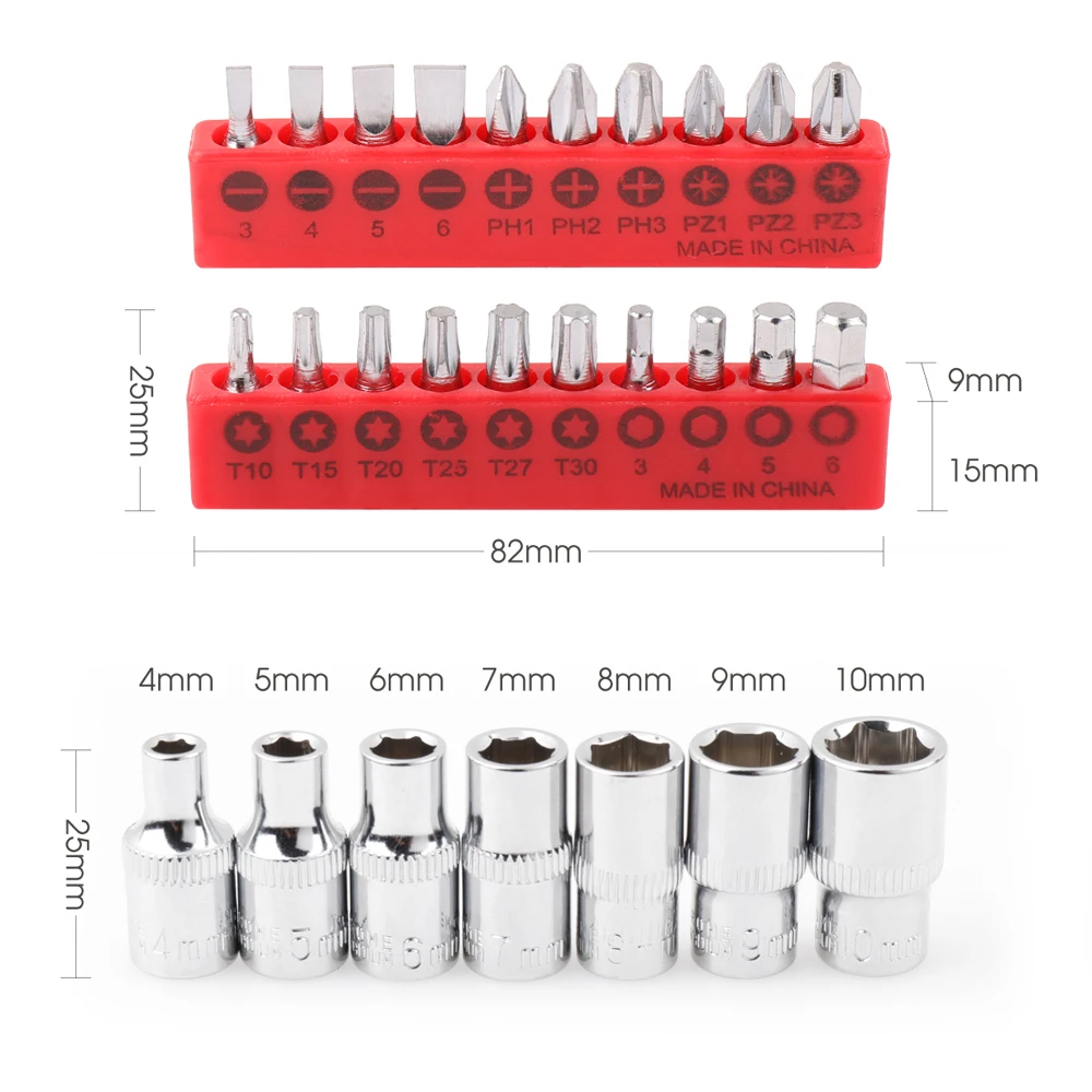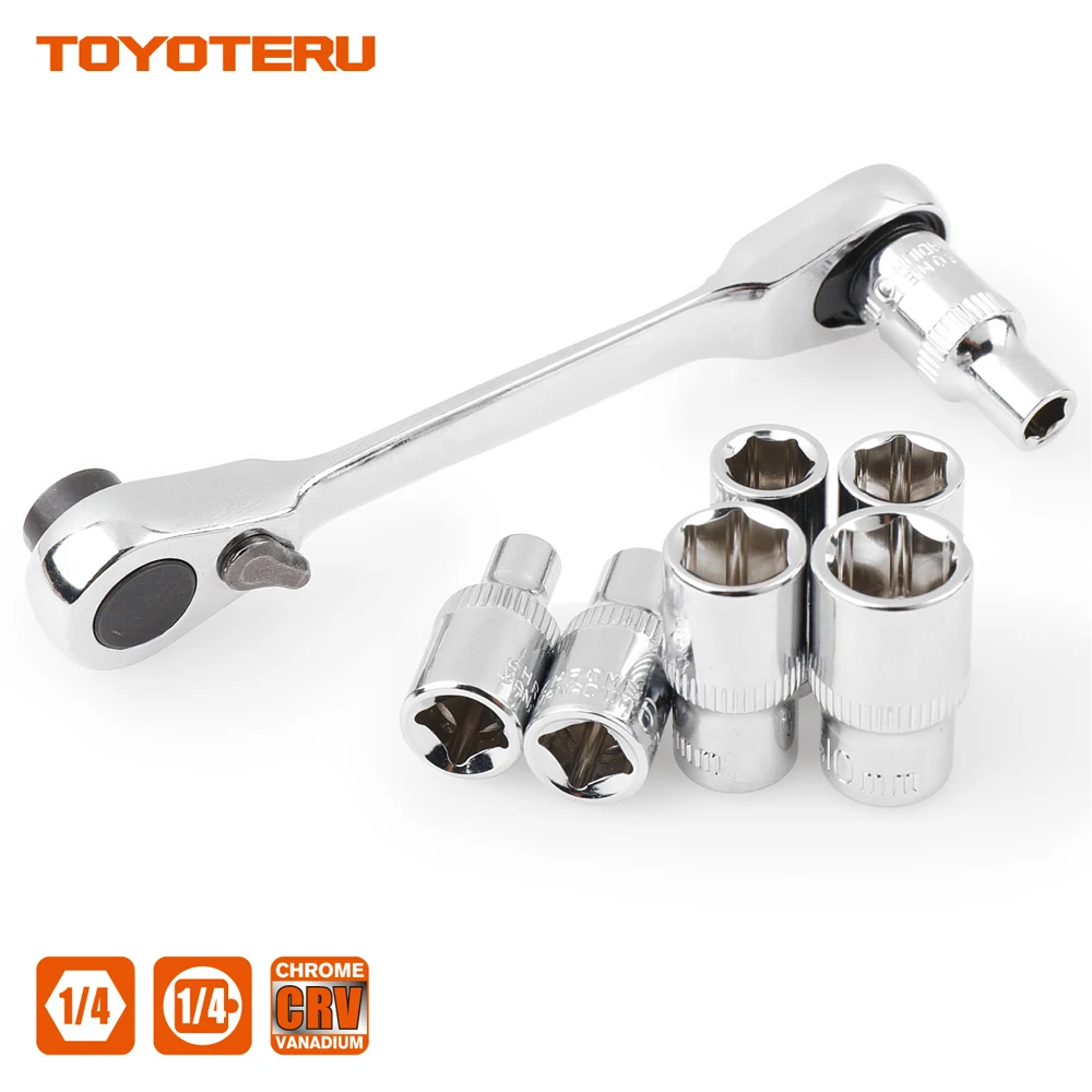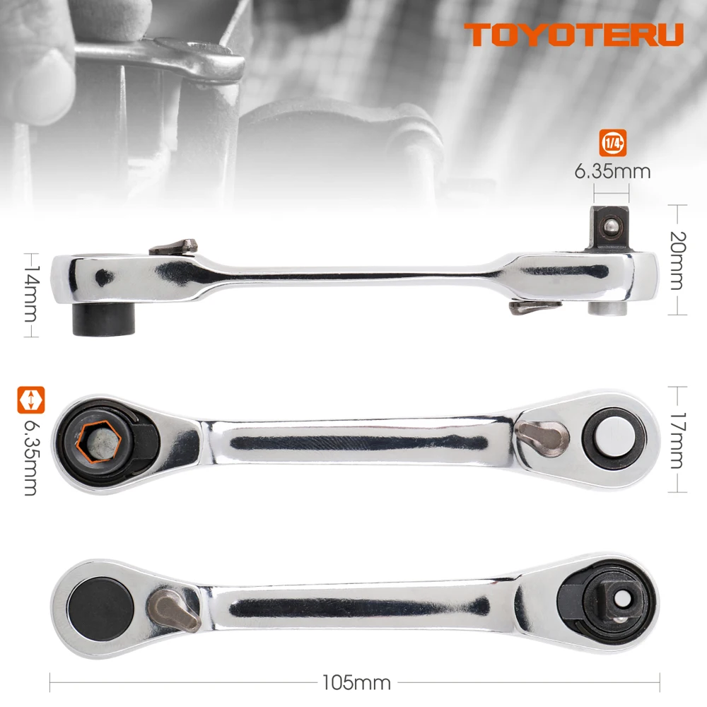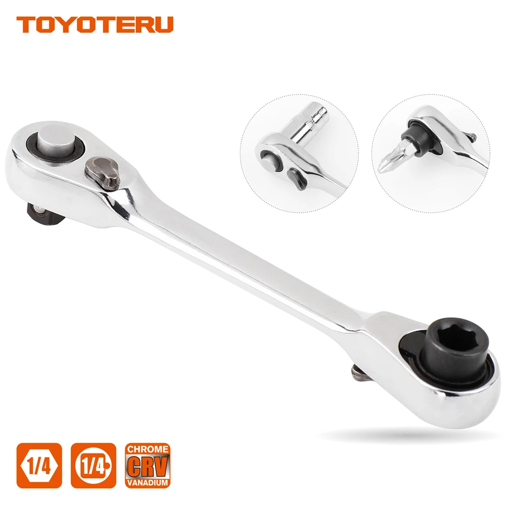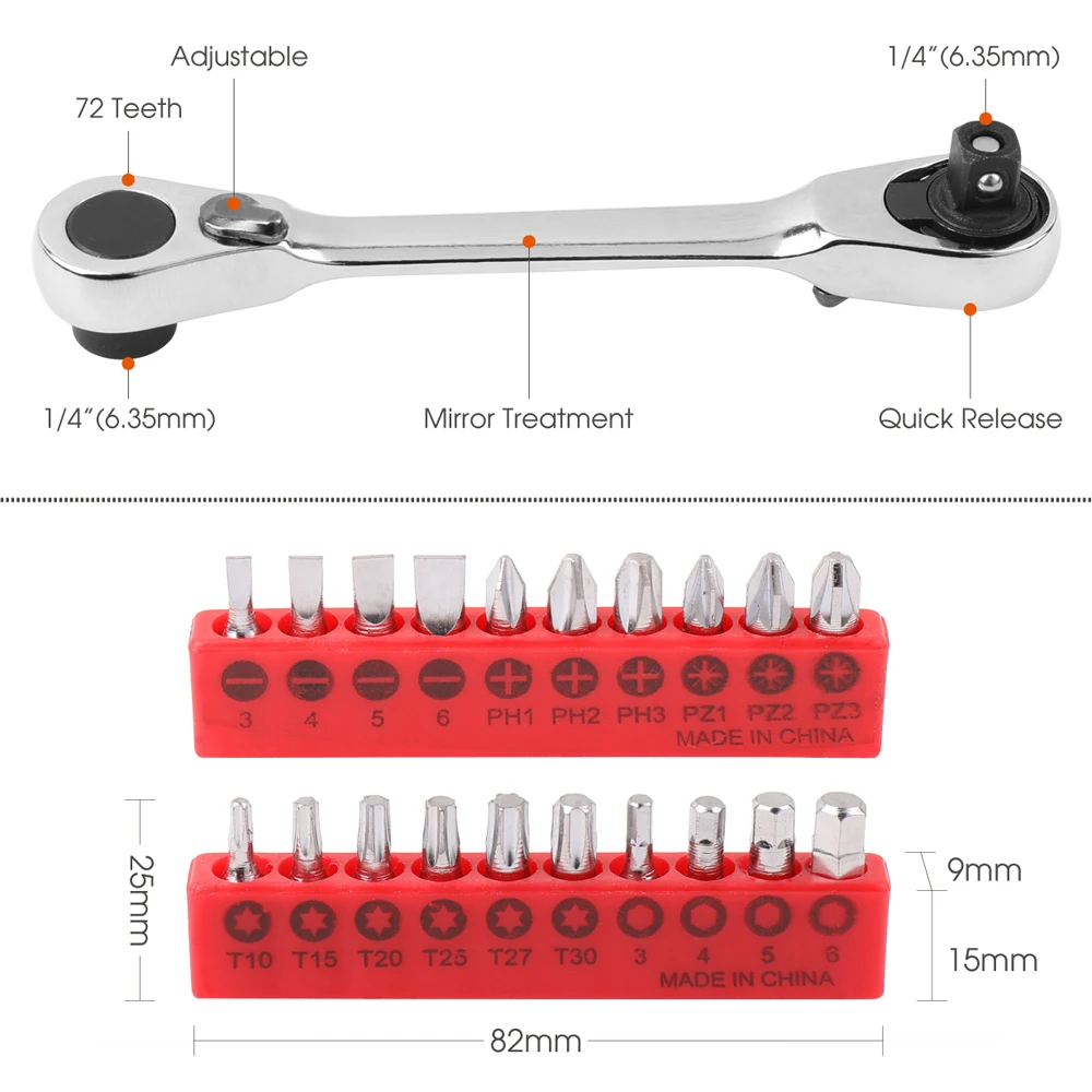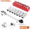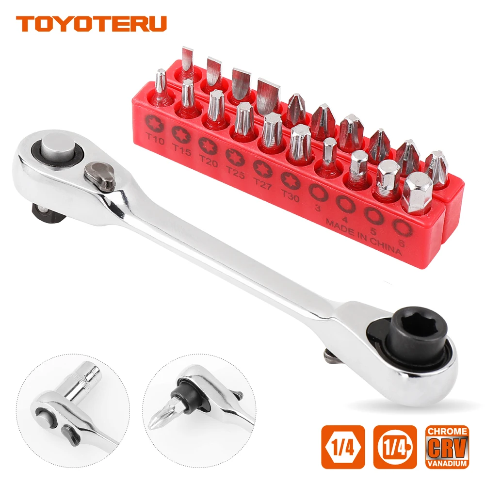 TOYOTERU Mini 1/4″ 72T Ratchet Wrench Socket Wrench Rods Or screwdriver bit 6.35mm Quick Socket Wrench with 20pcs Bit with 7pcs Socket with ALL