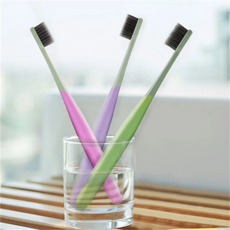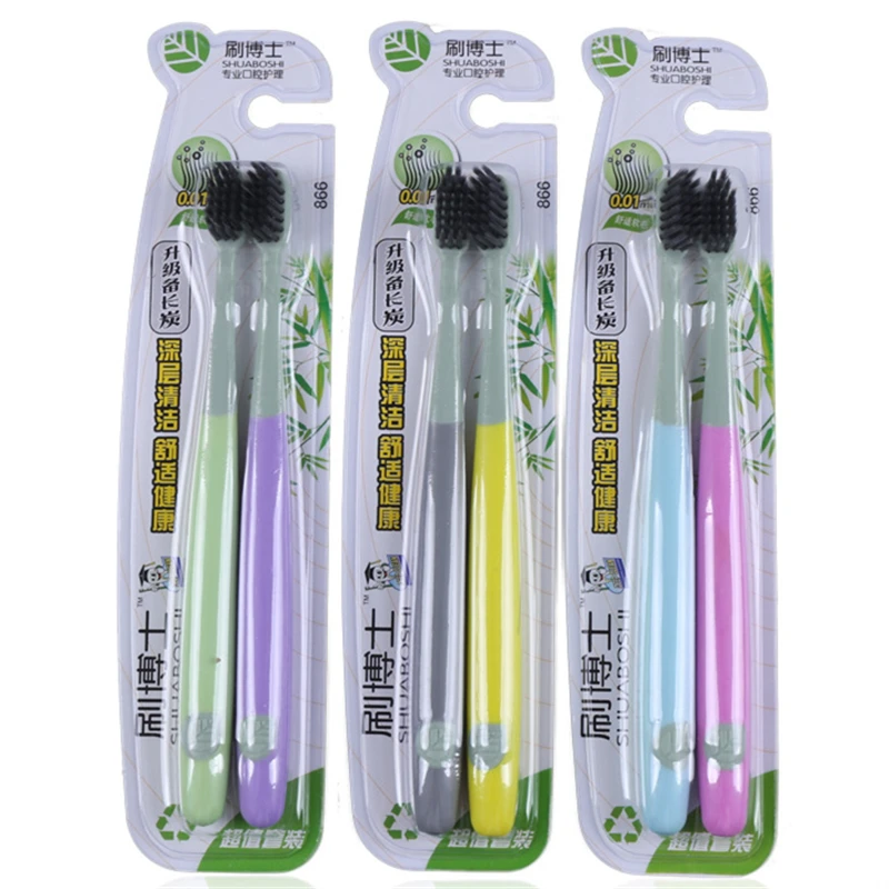 Hot Selling 2pcs/lot Adult Bamboo Charcoal Toothbrush Soft Anti-slip Toothbrush Color Random