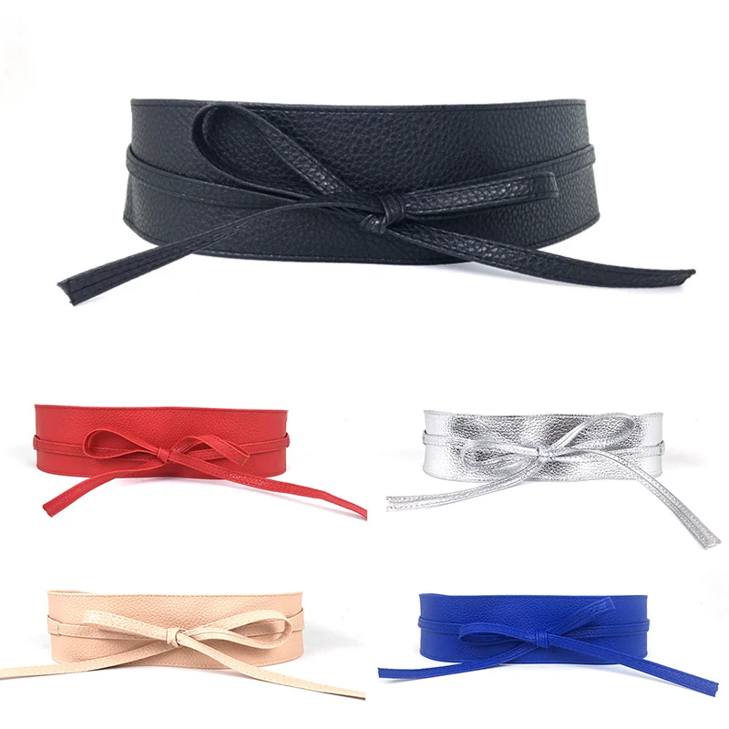 Hot-selling Belts 1PC New Graceful Leather Solid Women Dress Bowknot Wrap High Quality Wide PU Two Circlrs Adult Discounted