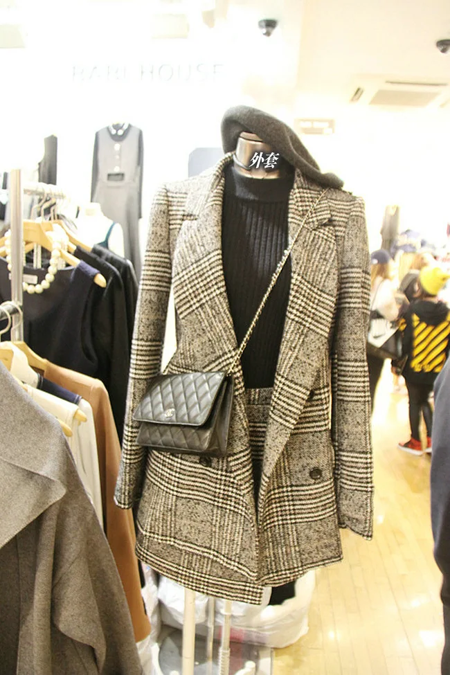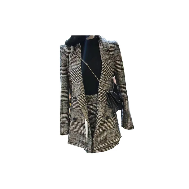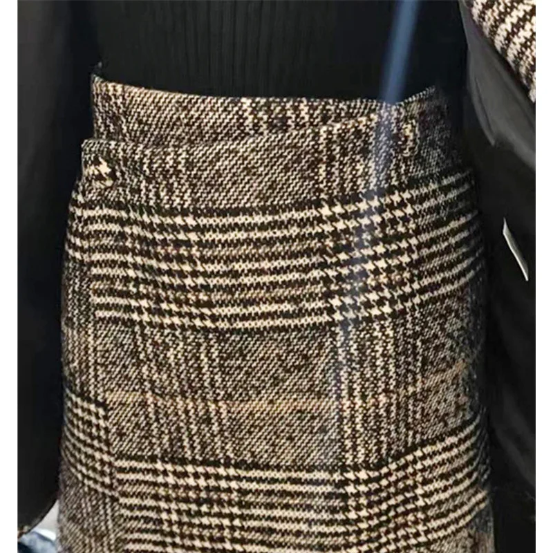 Hot Selling new 2017 lattice stripes long suit jacket half skirt suit ladies fashion casual suit + skirt two piece set (B482)