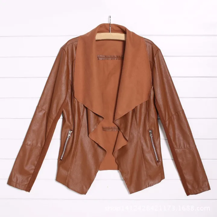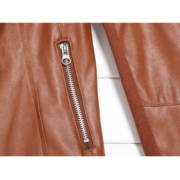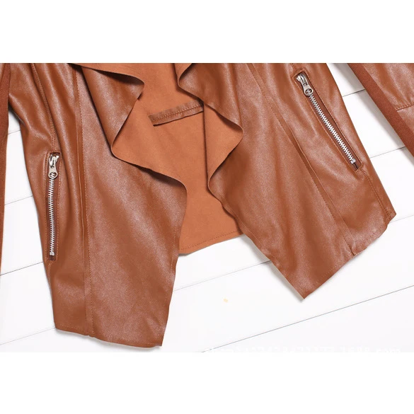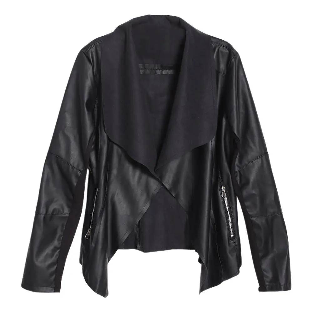 Hot Trendy Retro Lady Women Slim Biker Motorcycle PU Soft Leather Zipper Jacket Coat Black Asian Size