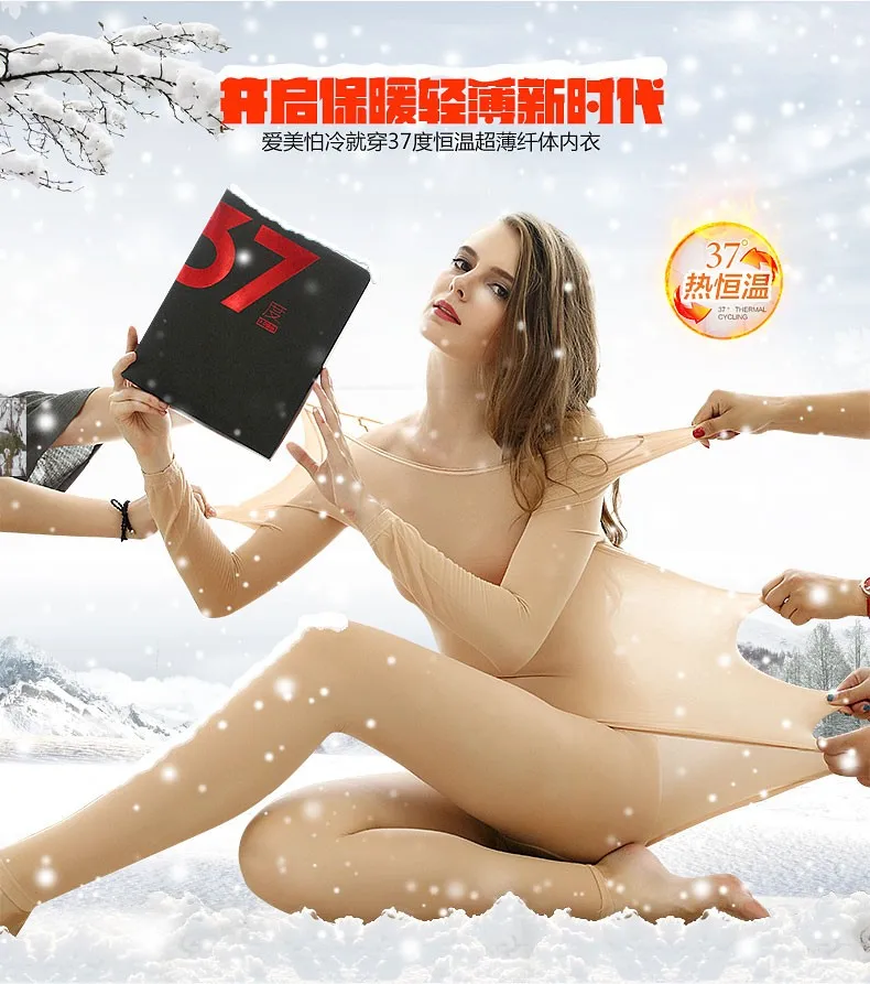37 degree thermal underwear is made of professional softwarm fabric, softwarm can absorb the moisture of skin and transform to heat energy. Thus achieve the function of fever, and keep body temperature in 37 degree. Another feature is that this seamless underwear is ultrathin, with such thin cloth, you may feel like wear a set of thick thermal underwear.