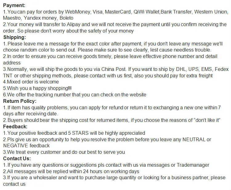 • If you did not receive the product within the guaranteed time( 45 days not including 2-5 day processing) you can request a refund or a reshipment.