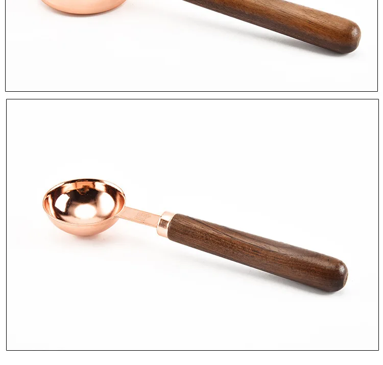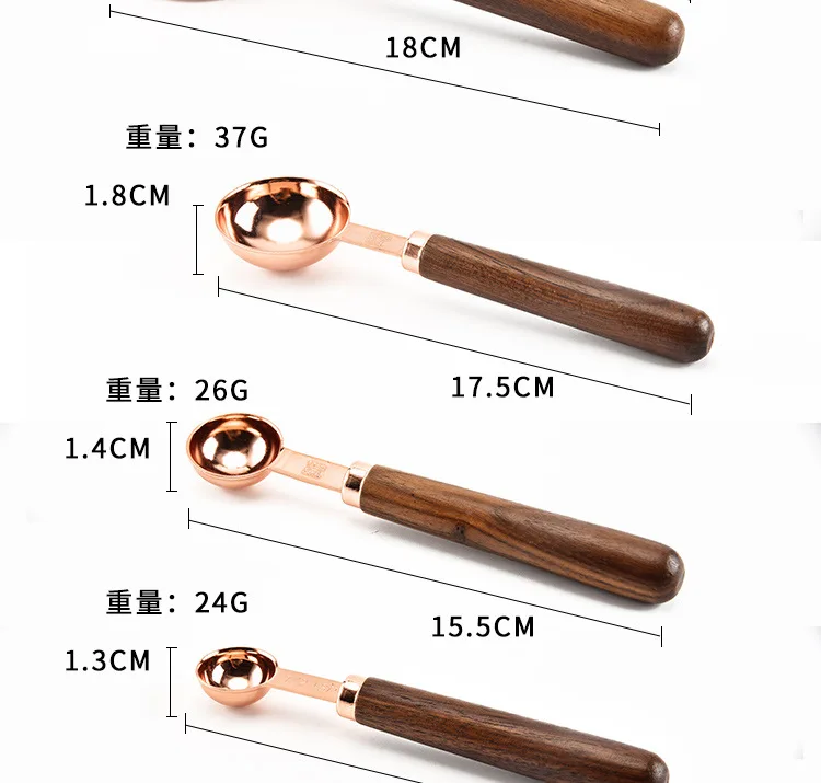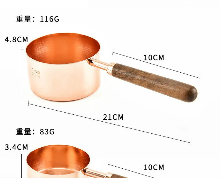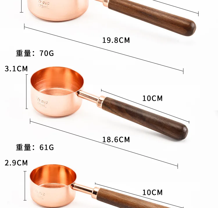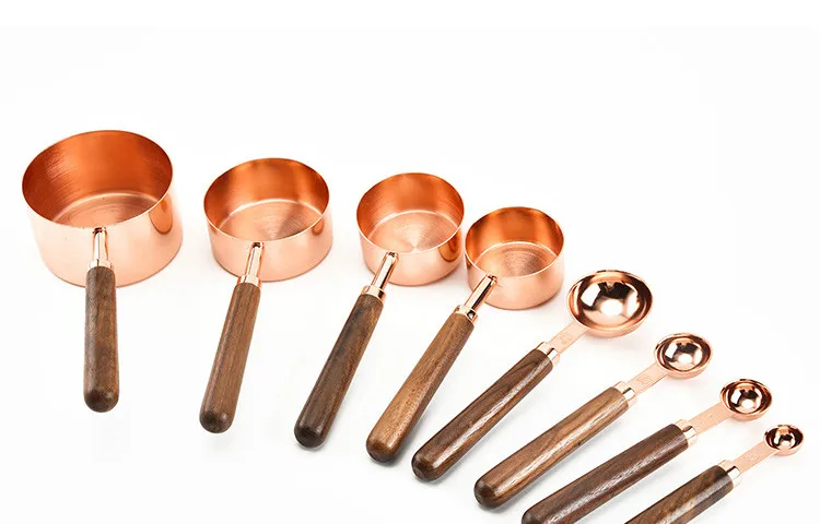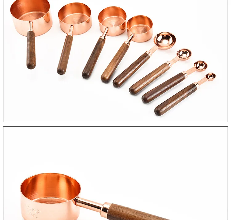 Household Kitchen Dining Bar Baking Tools Walnut Wooden Handle Copper Plating Measuring Cups Spoon Cake Sugar Tools Set