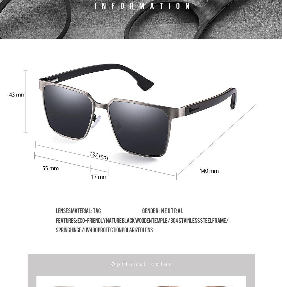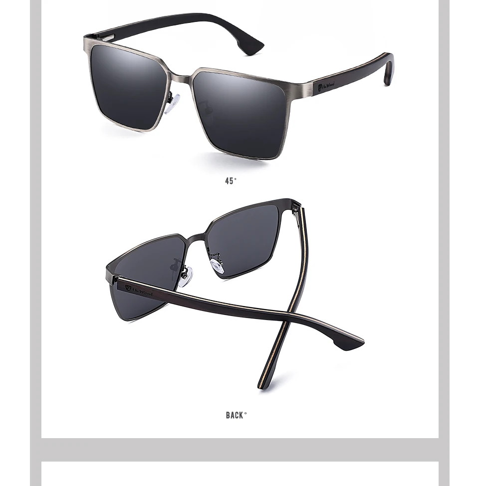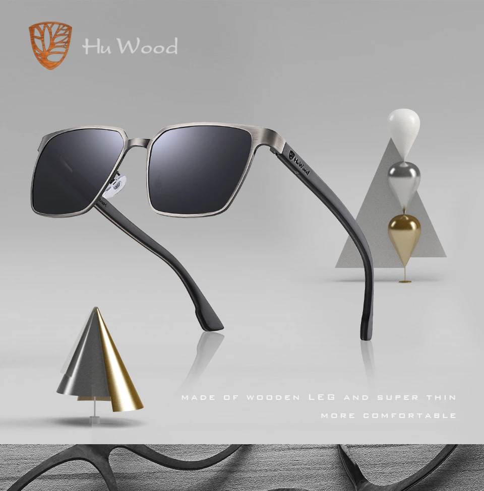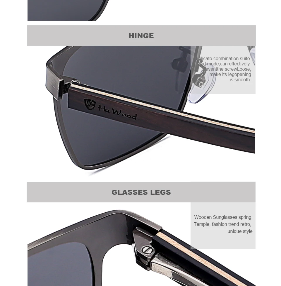 HU WOOD Metal Frame sunglasses spring wood Temple with polarized lenses and 4 colors and sunglasses for men and women GR8037