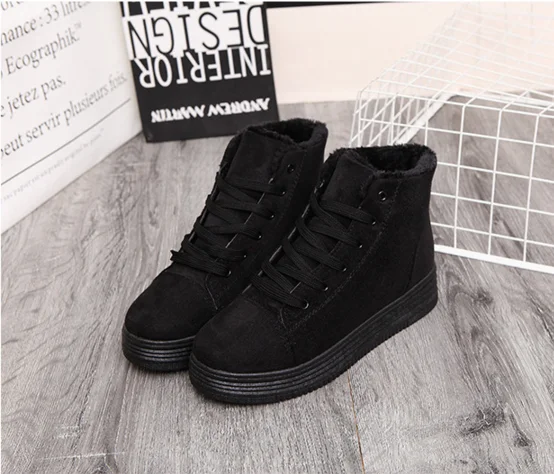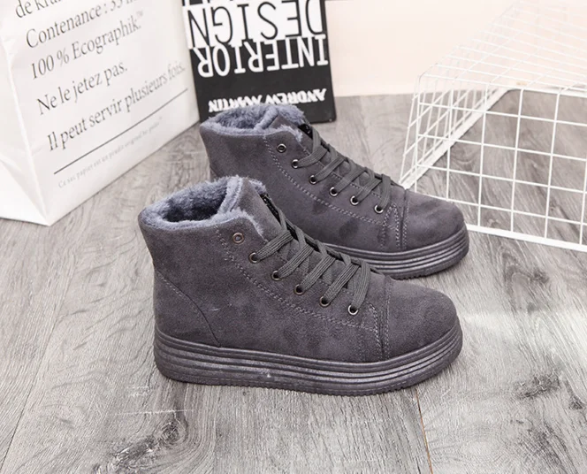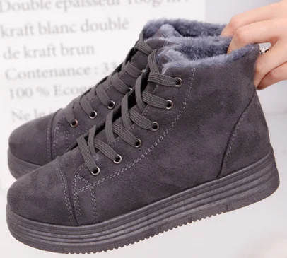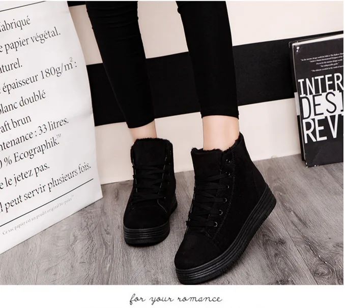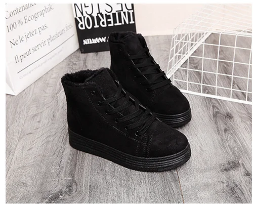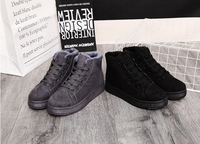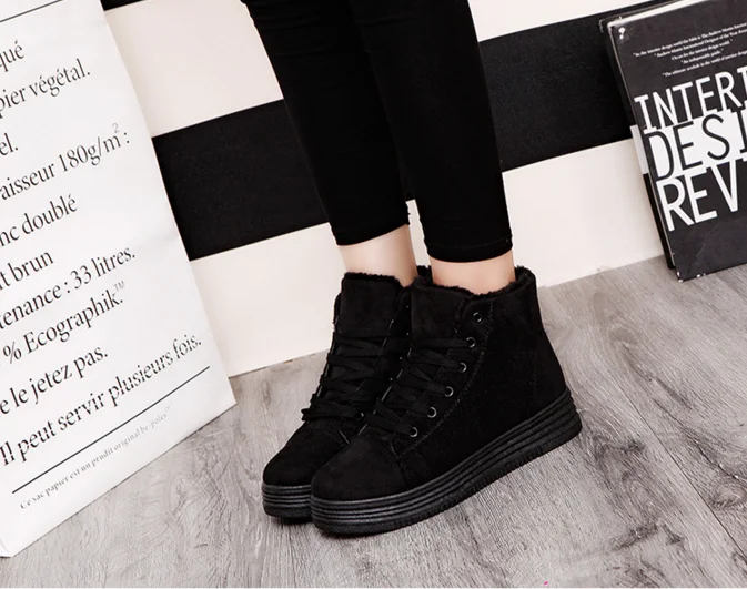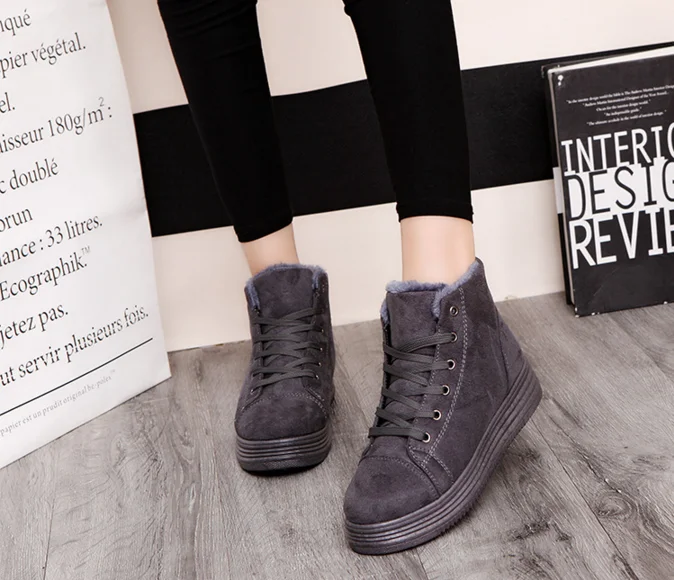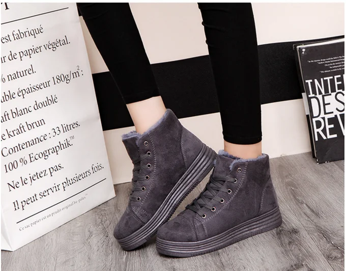 HUANQIU 2017 Brand Women Winter Snow Boots Casual Fashion Suede Lace Up Non-slip Warm Platform Snow Ankle Boots Shoes FM14