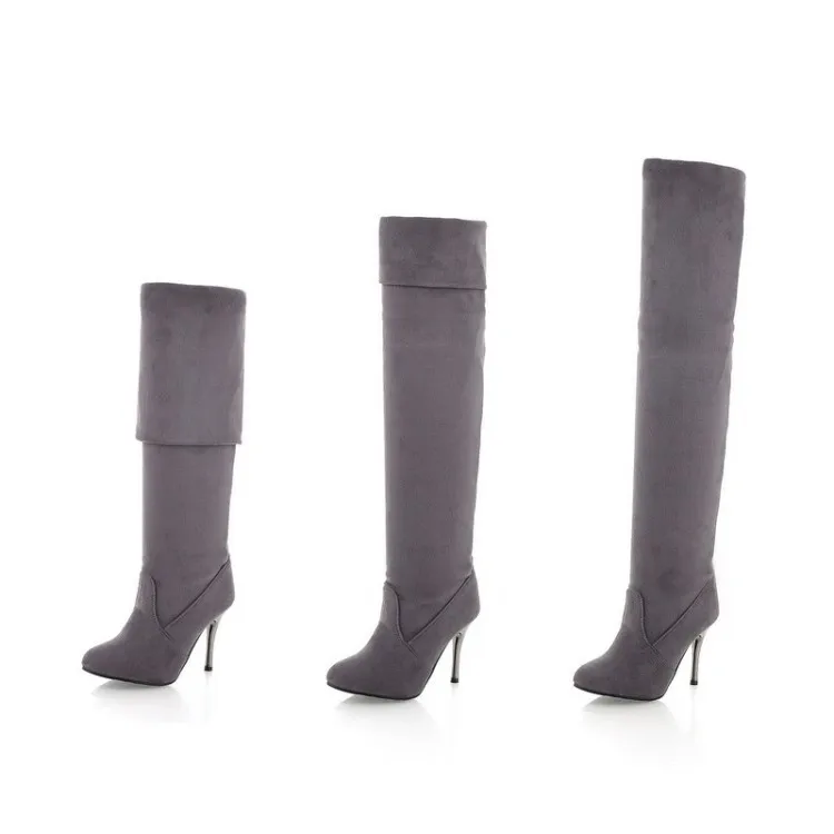 HUANQIU Hot fashion boots women Nubuck Leather sexy Stovepipe long boots Over the Knee high heels women boots size 34-43 WFQ90