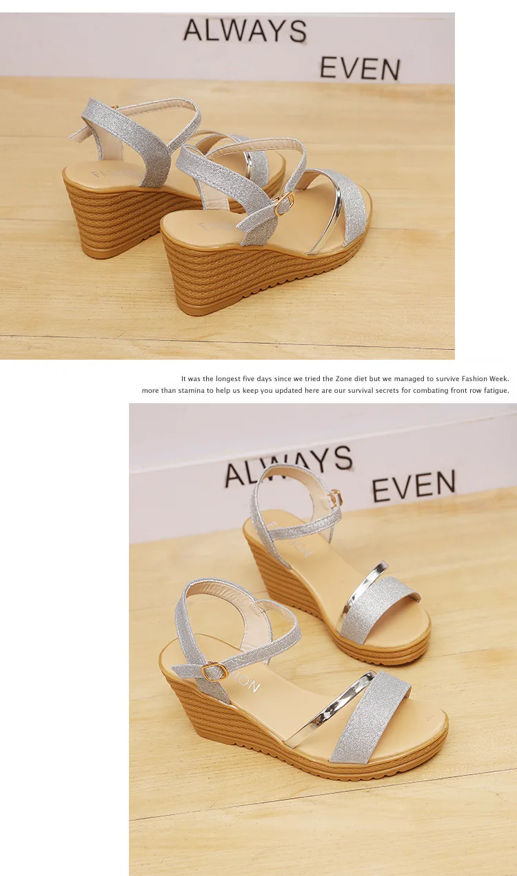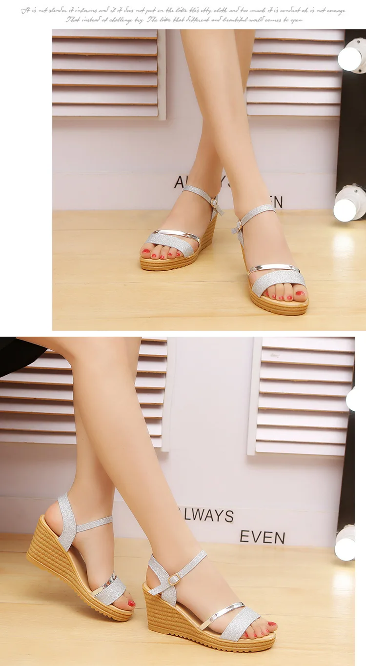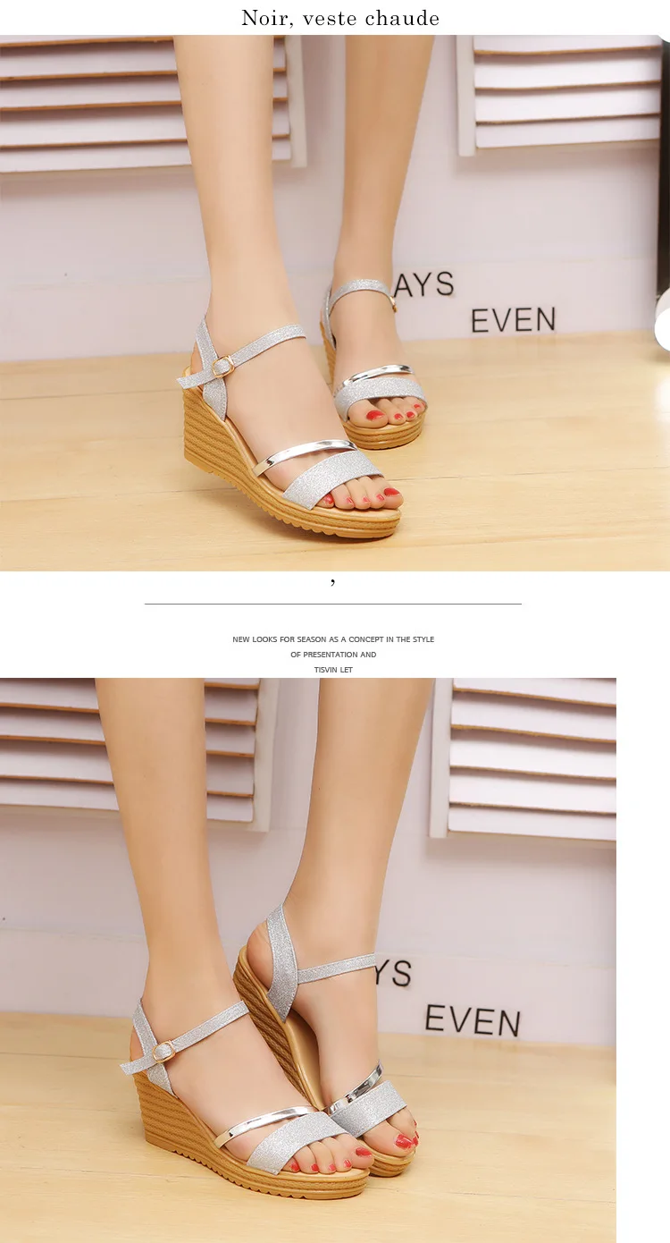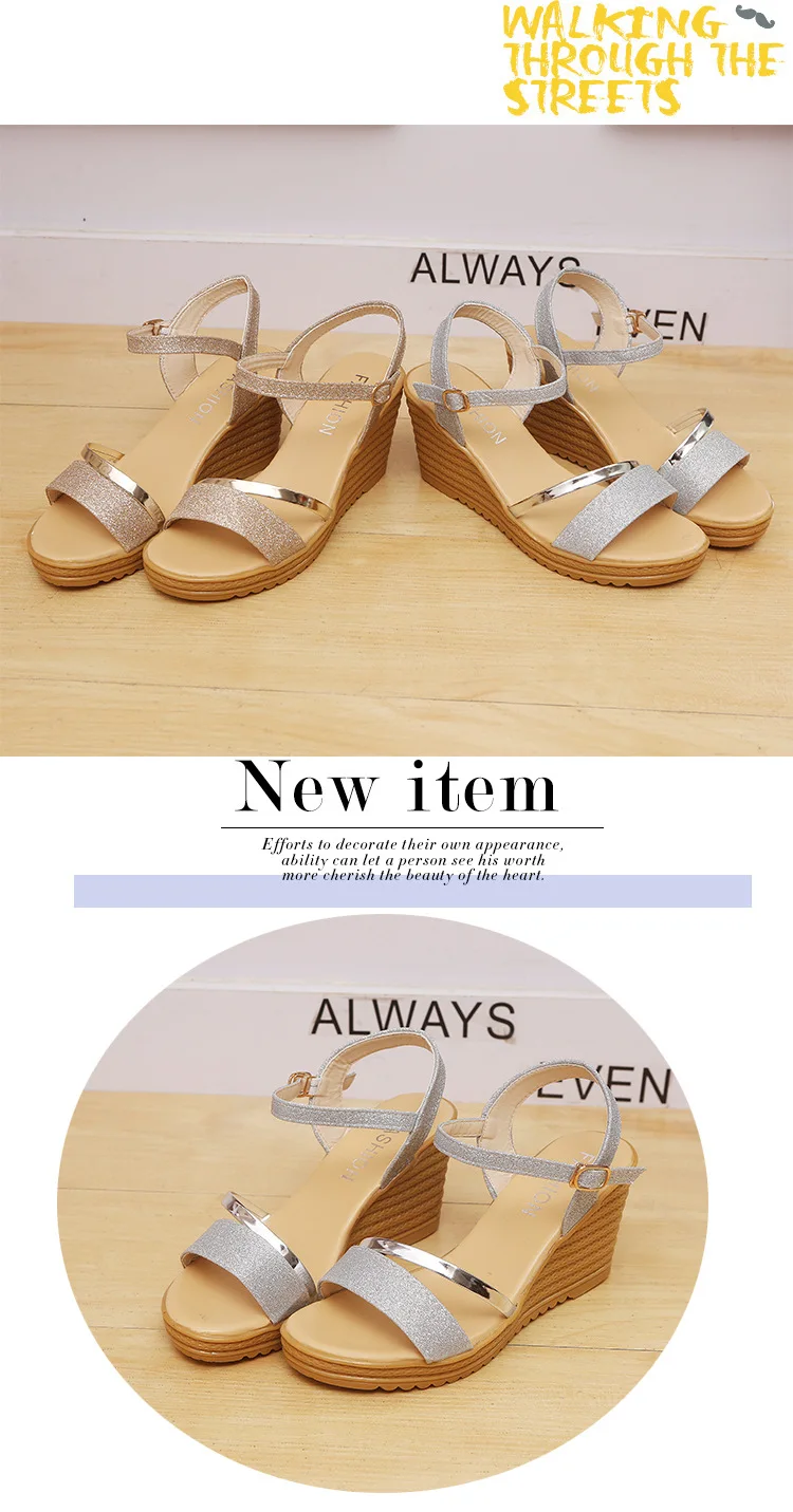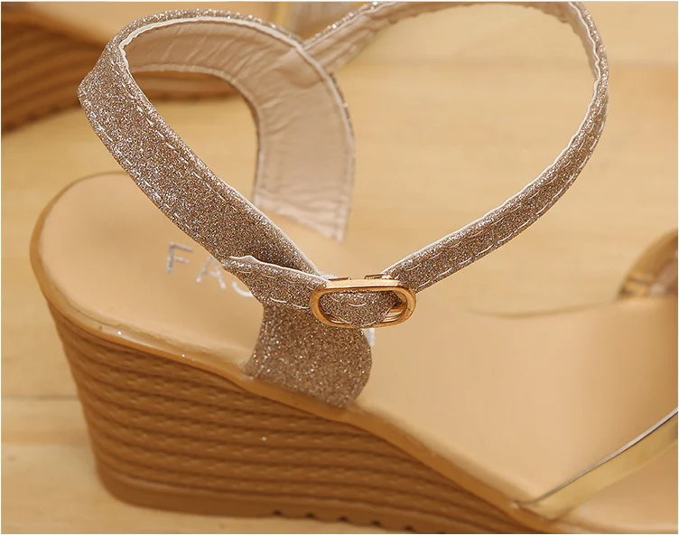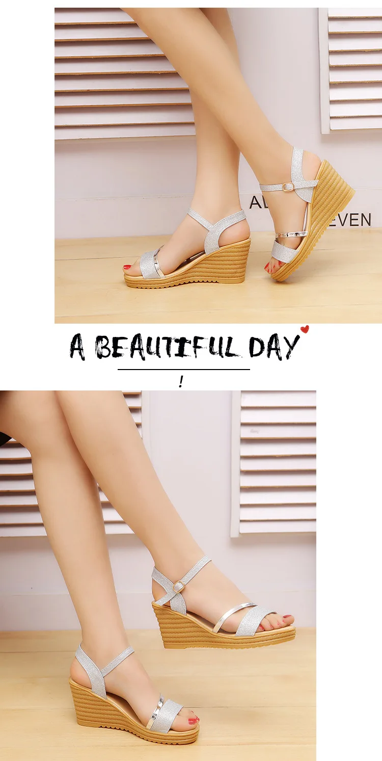 HUANQIU Wedges Platform Women Sandals Fashion Quality Comfortable Bohemian Women Sandals Shoes High Heel Gold Black Shoes WFQ32