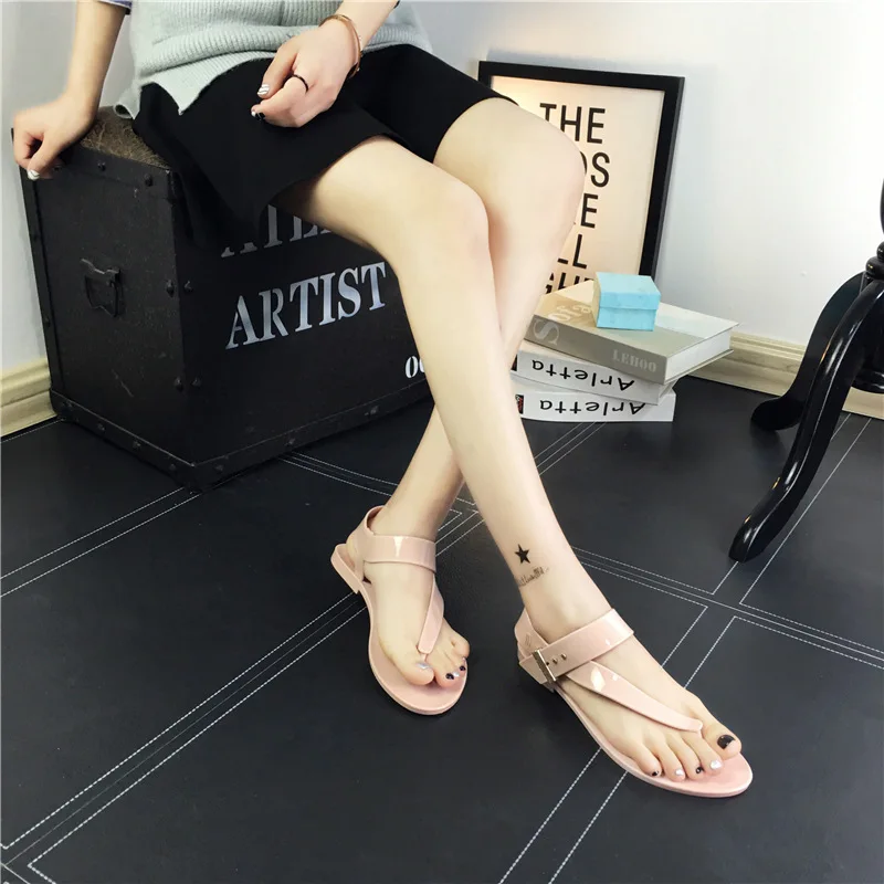 HUANQIU Women Sandals 2018 Summer Women Flat Sandals Decor Women Beach Jelly Shoes Non-slip Flip Flops Holiday Beach Slippers JH231