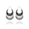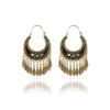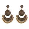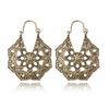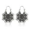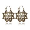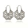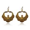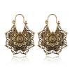 HuaTang Vintage Antique Gold Silver Earring Geometric Ethnic Flower Carving Drop Earring for Women Girl Dangle Earring Jewelry