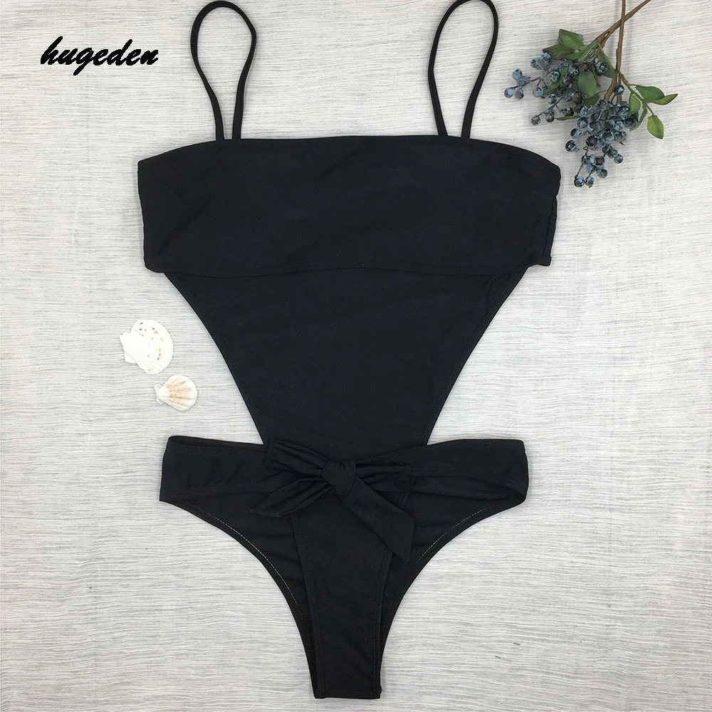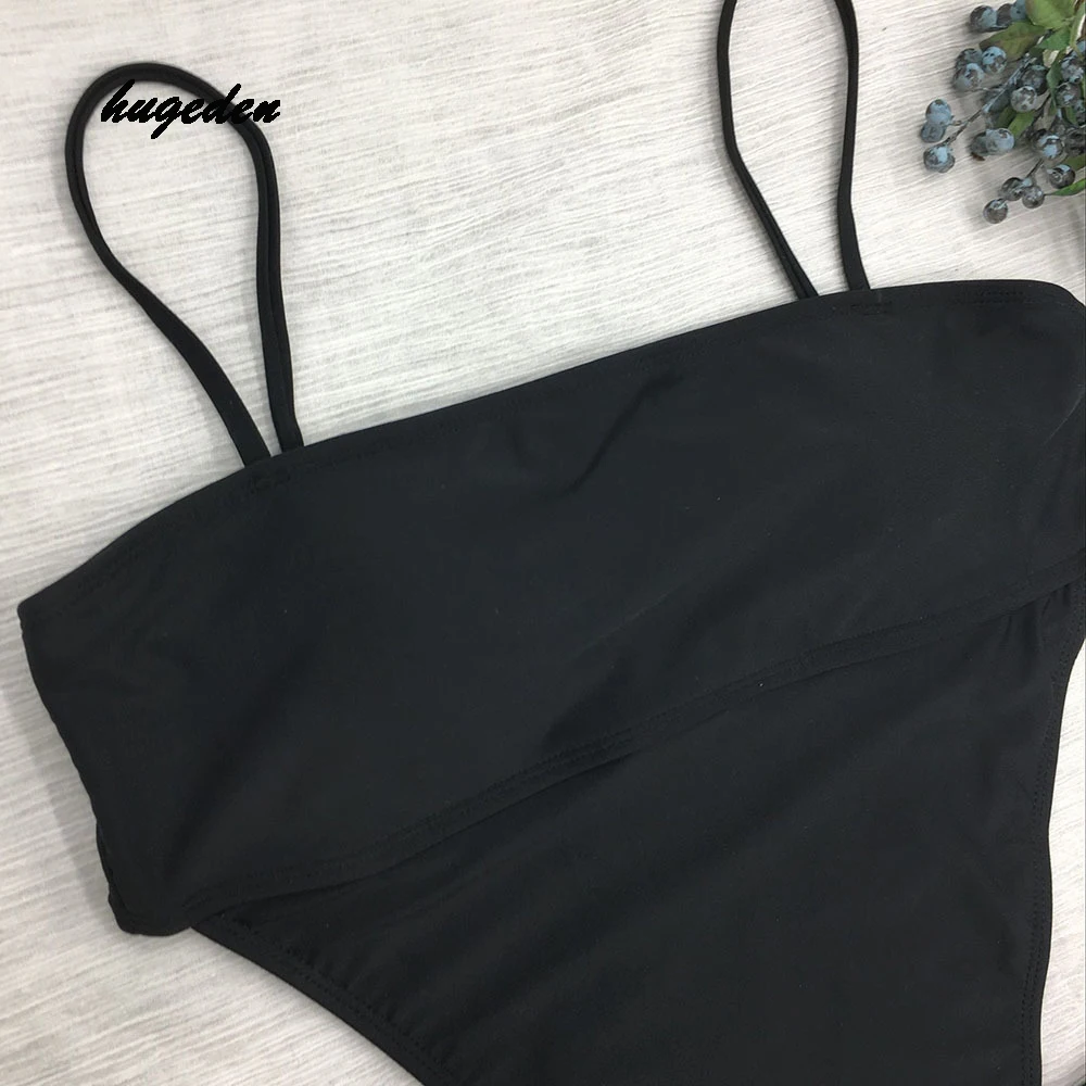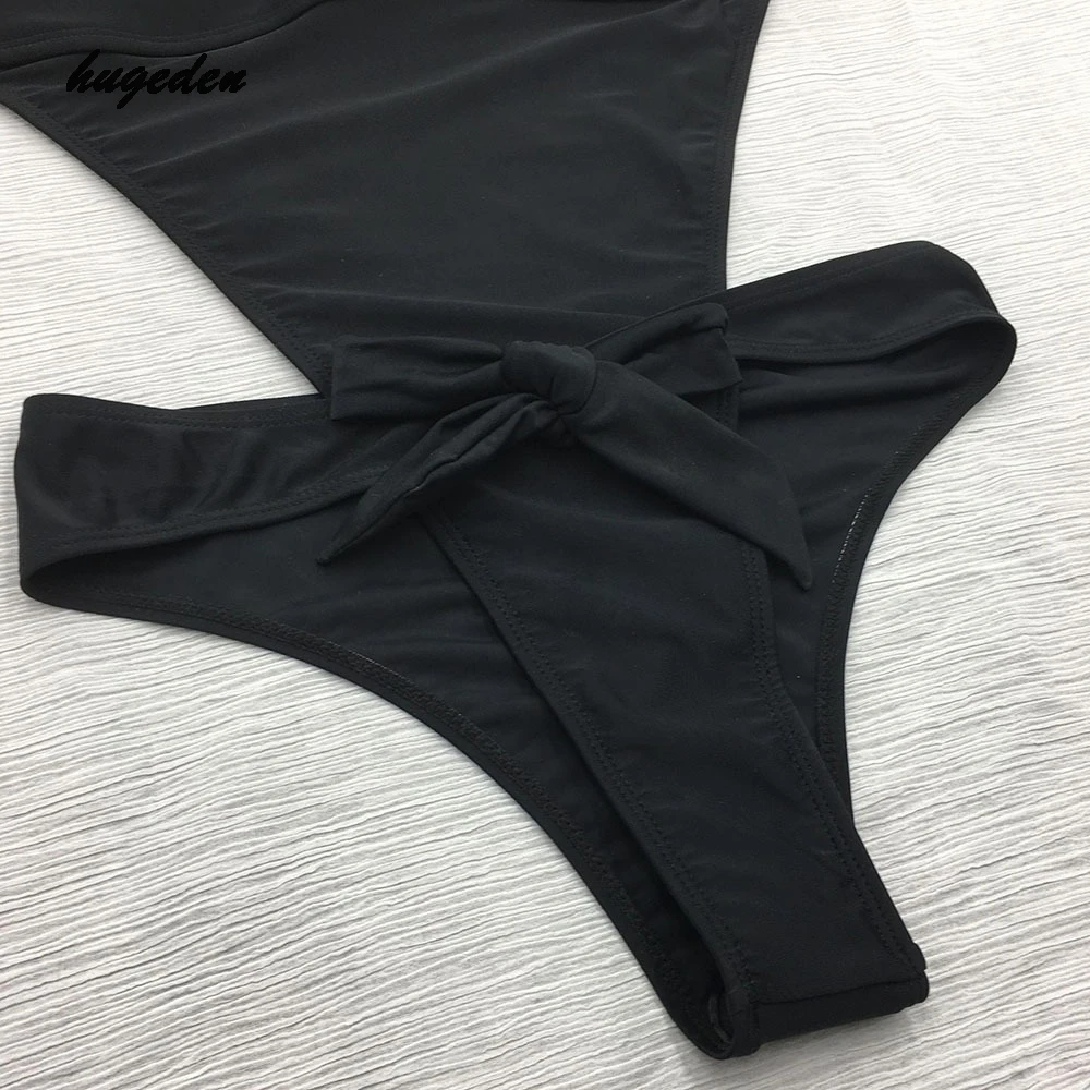 Hugeden Black Women Swimsuit Halter Solid Sexy Swimwear Backless Padded Bra Beach Wear Push Up Brazilian Swim Suit Bathing Suits