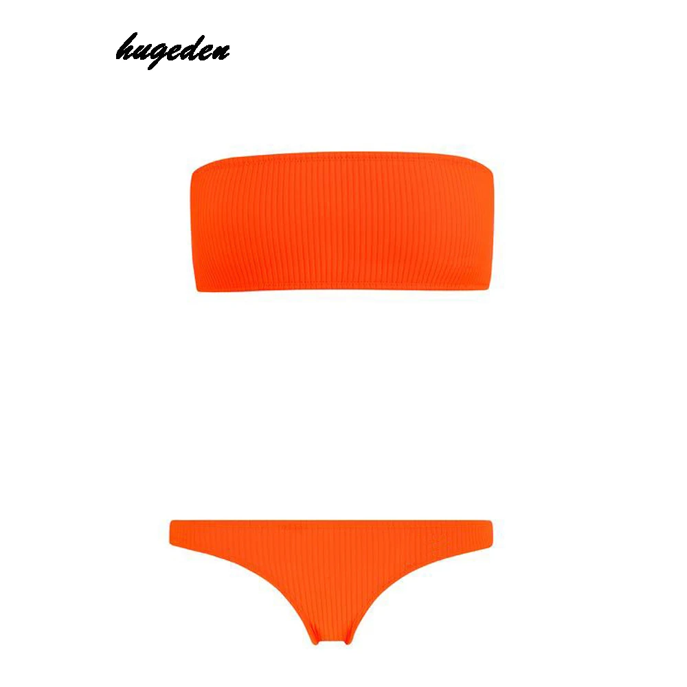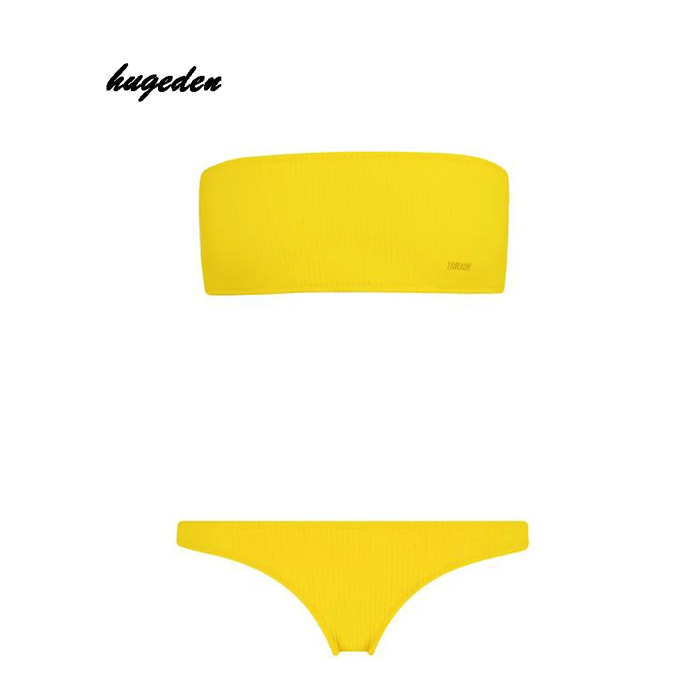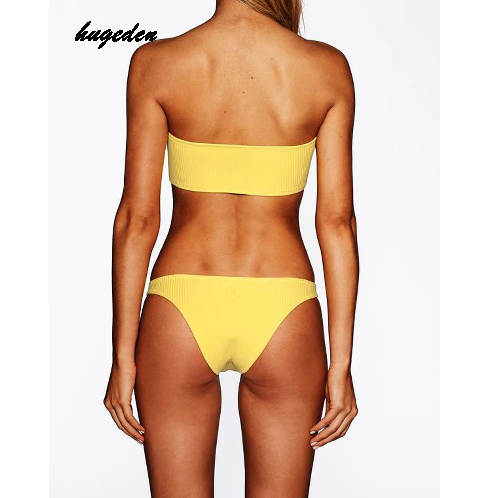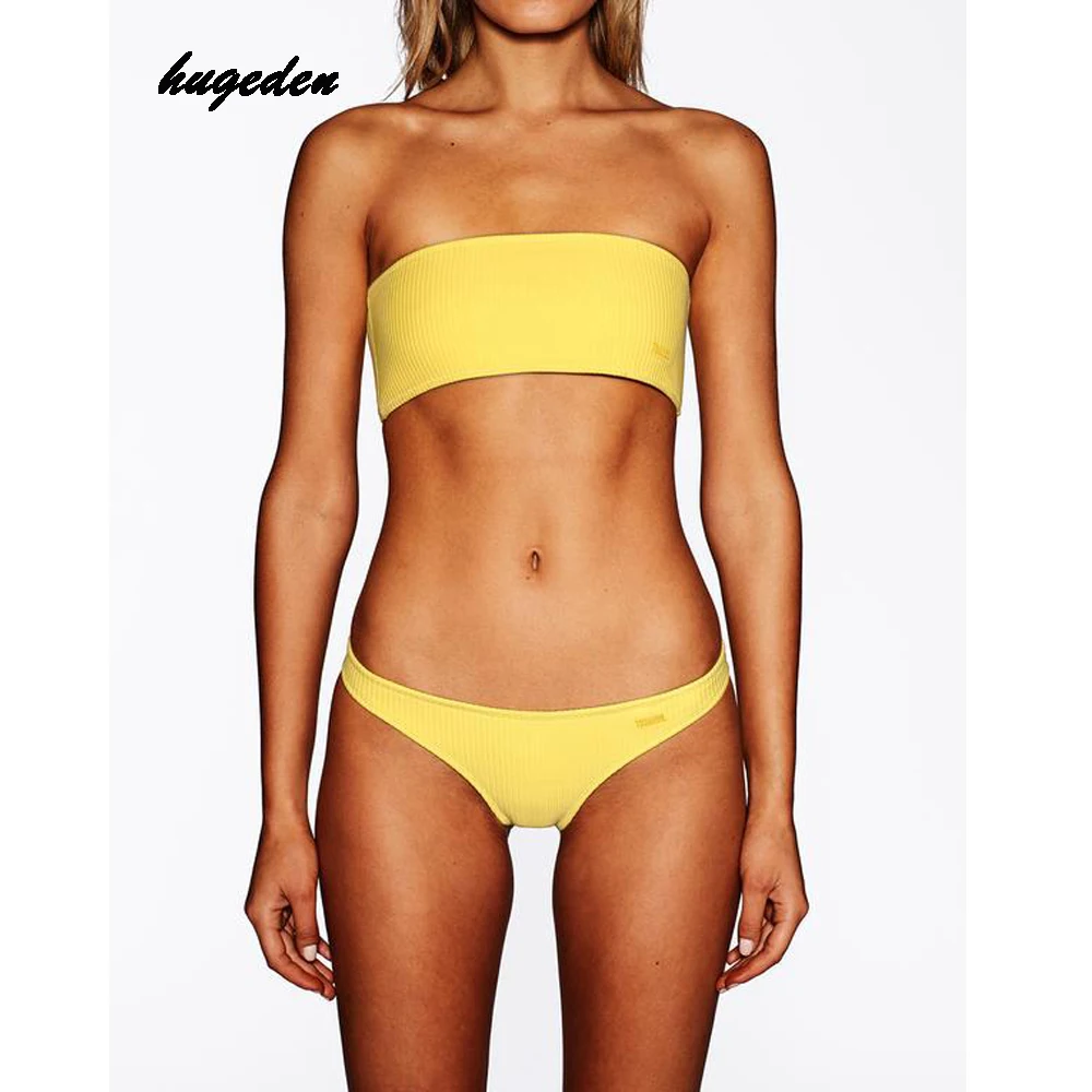 Hugeden Solid Bikini Set Bandeau Women Sexy Swimwear Swimsuit Female Push Up Black White Bathing Suit Beach Wear Biquini Bikinis