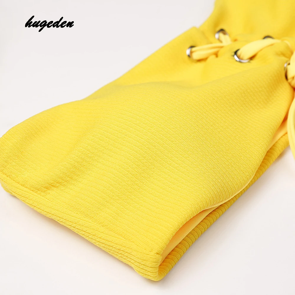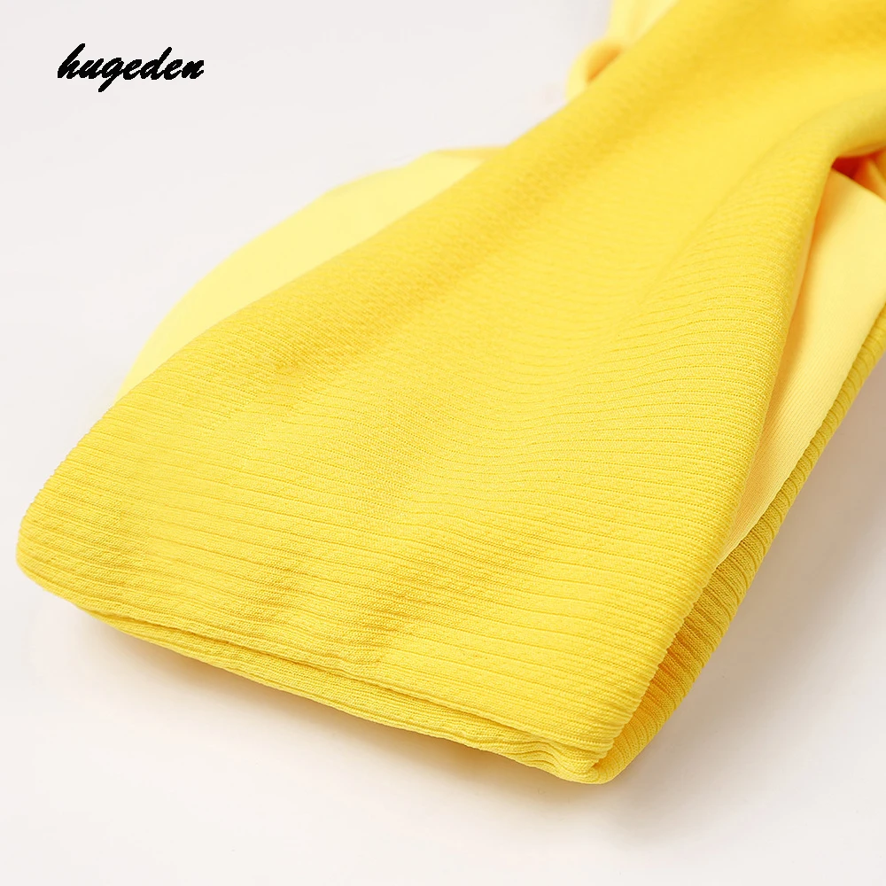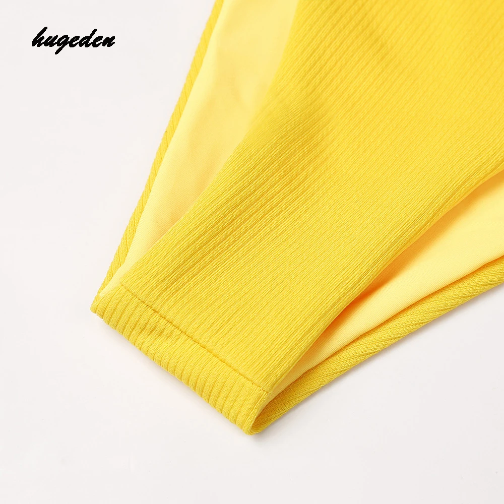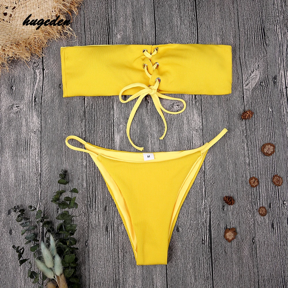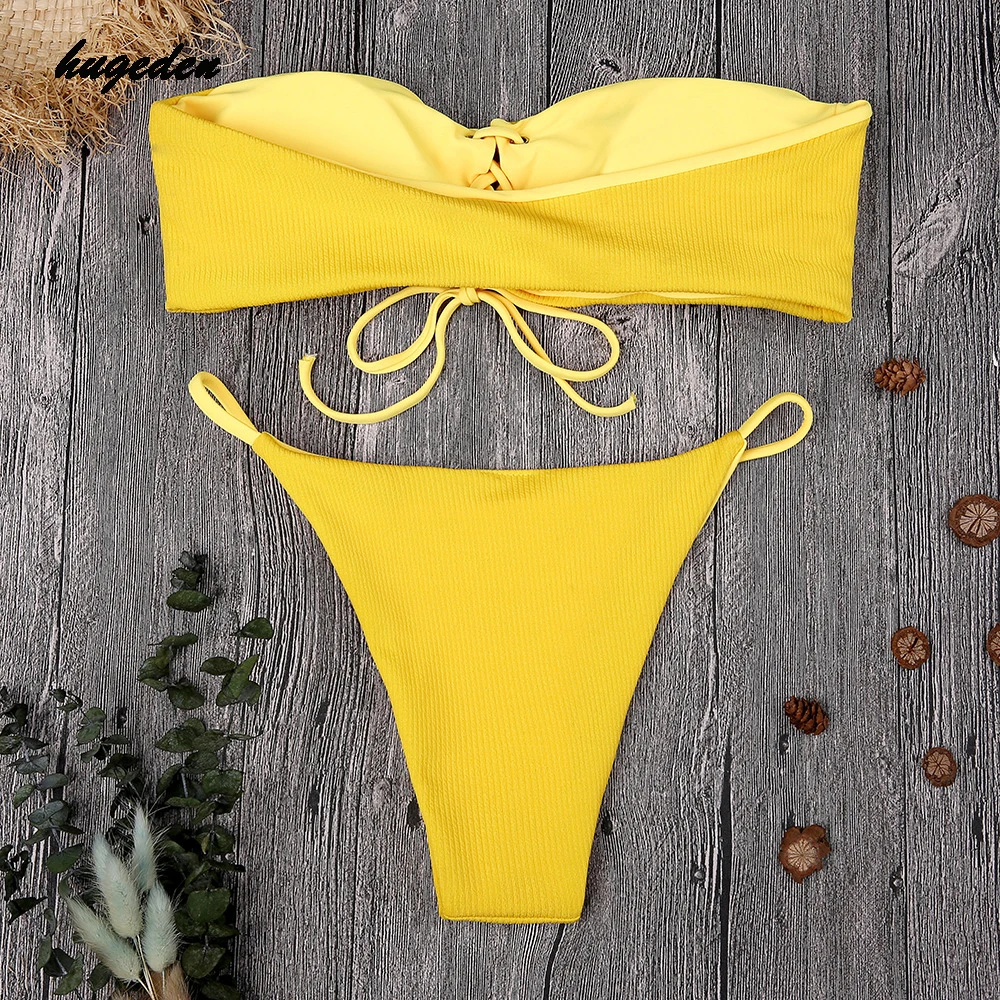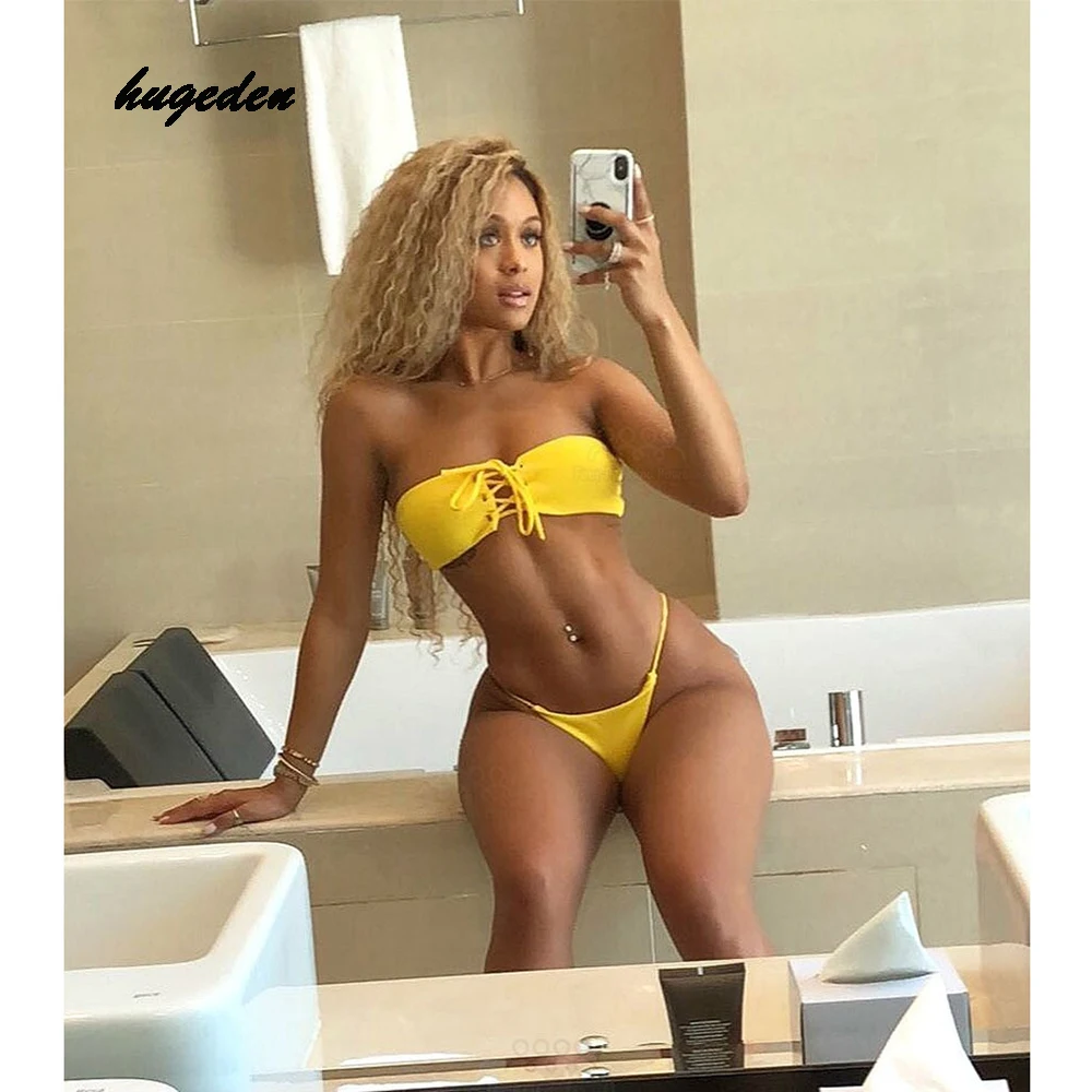 Hugeden Solid Bikini Set Women Sexy Halter Swimsuit Bandeau Low Waist Yellow Swimwear Push Up Beach Wear Brazilian Monokini