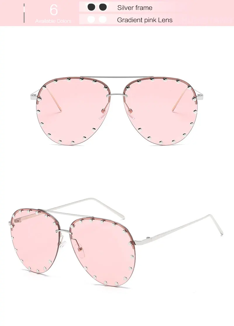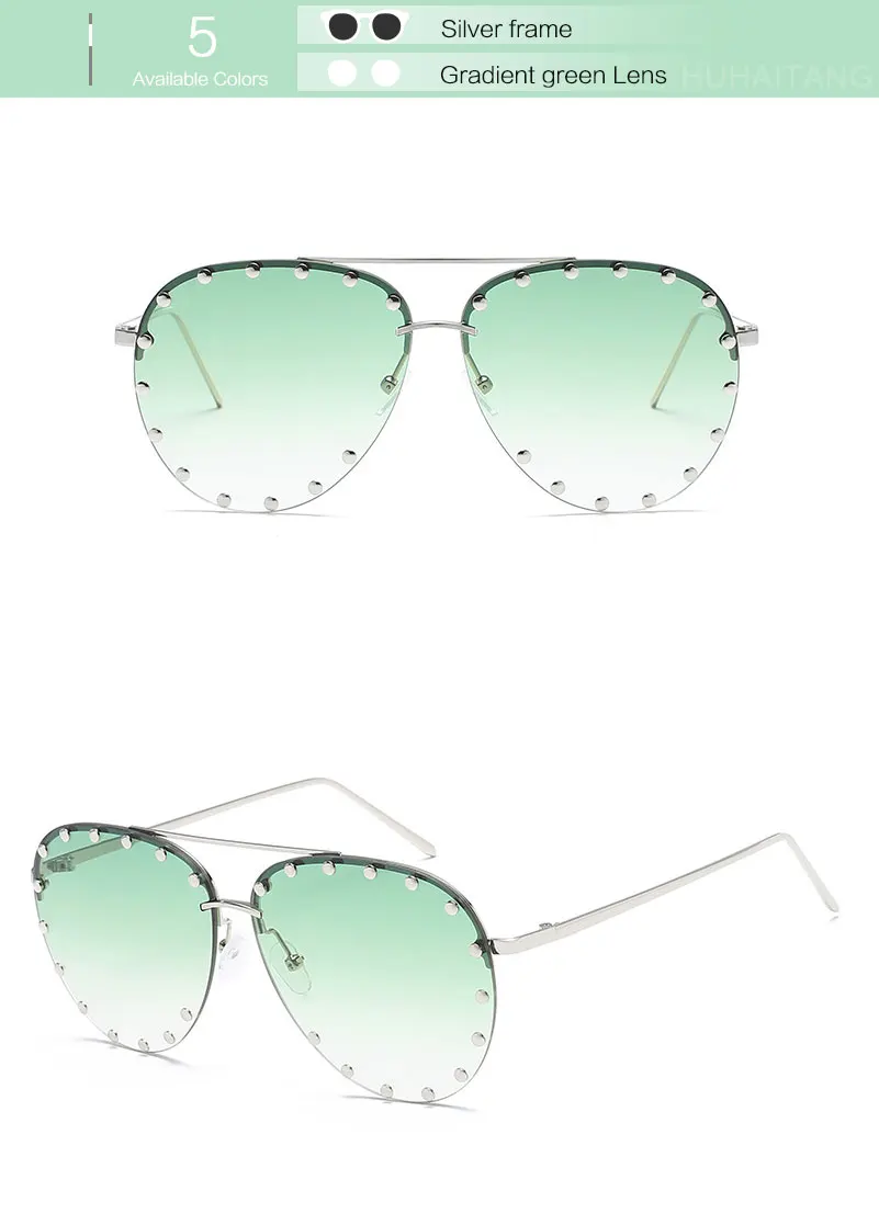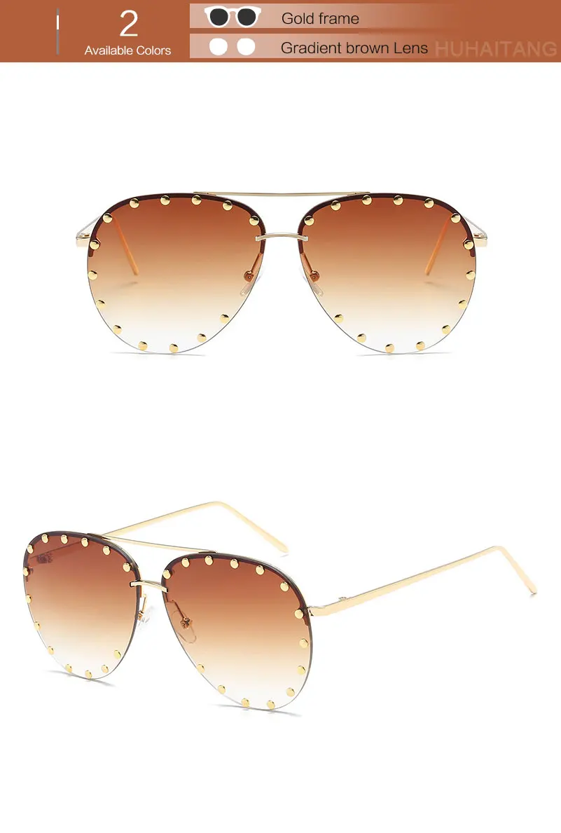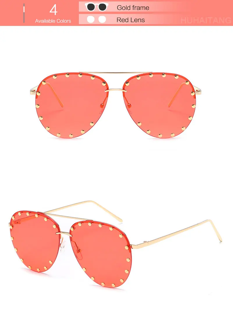 HUHAITANG Luxury Aviator Sunglasses Women Metal Rivets Men Pilot Sun Glasses For Female 2018 High Quality Brand Designer Eyewear