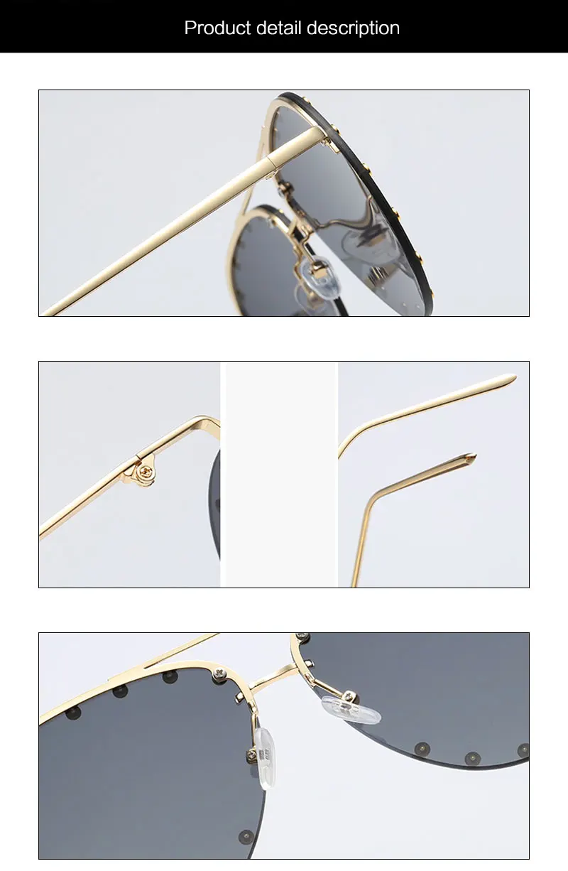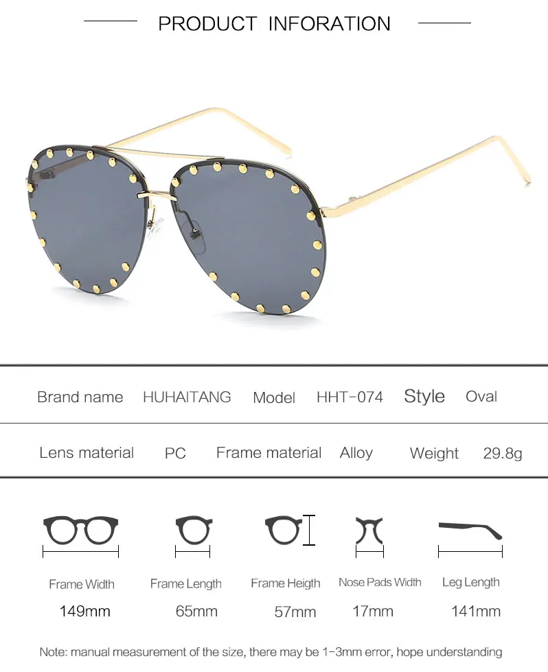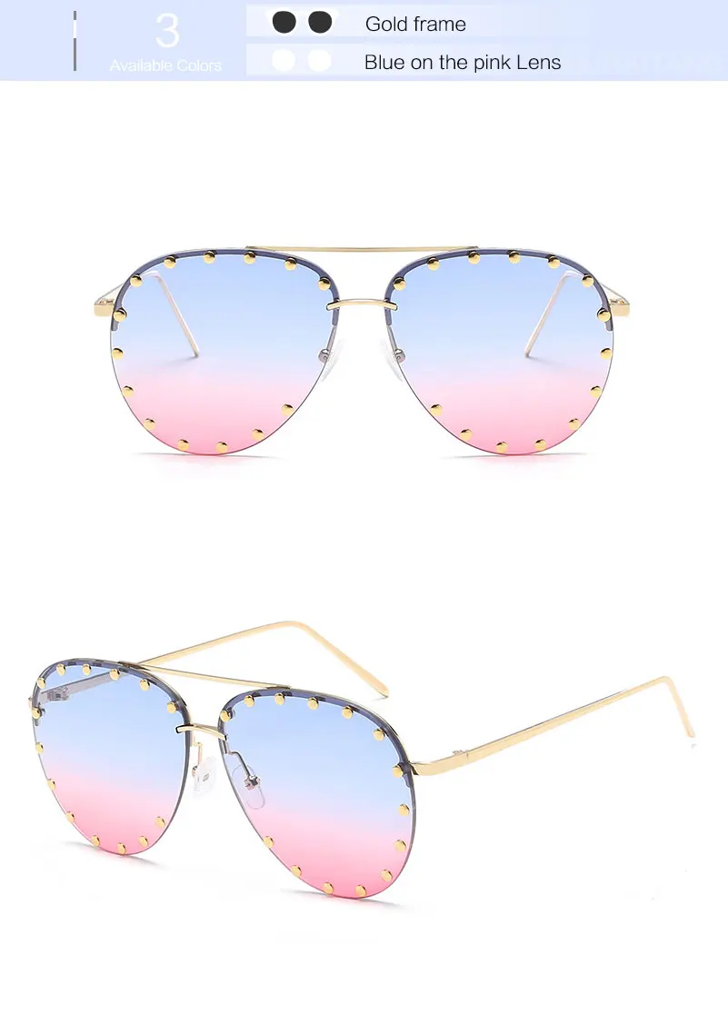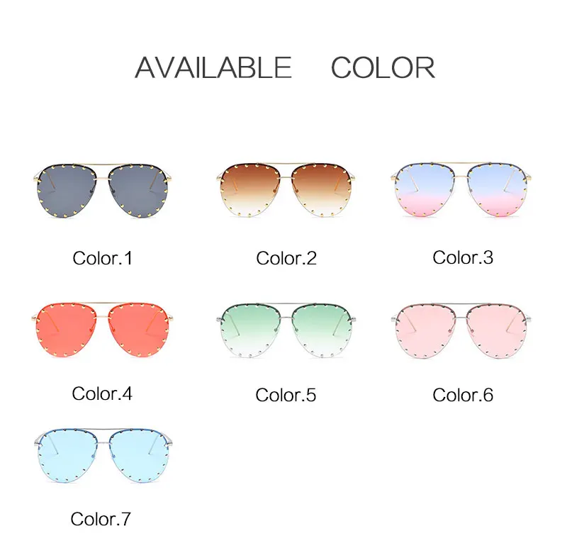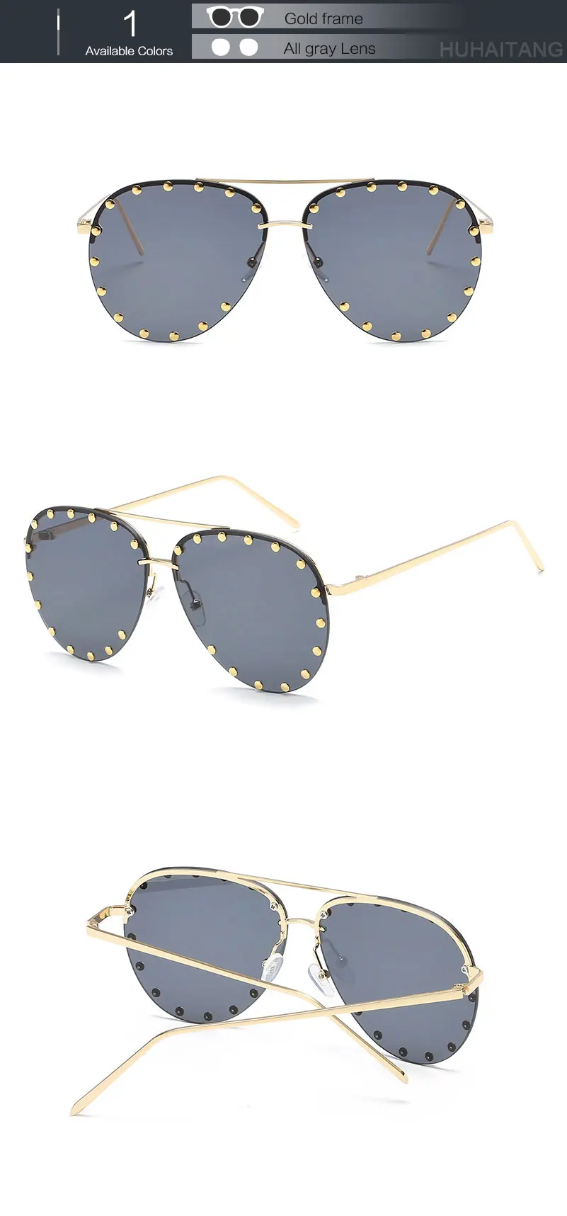 HUHAITANG Luxury Aviator Sunglasses Women Metal Rivets Men Pilot Sun Glasses For Female 2018 High Quality Brand Designer Eyewear