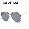 HUHAITANG luxury brand oversized sunglasses women round female transparent frame sun glasses for ladies brand designer eyewear