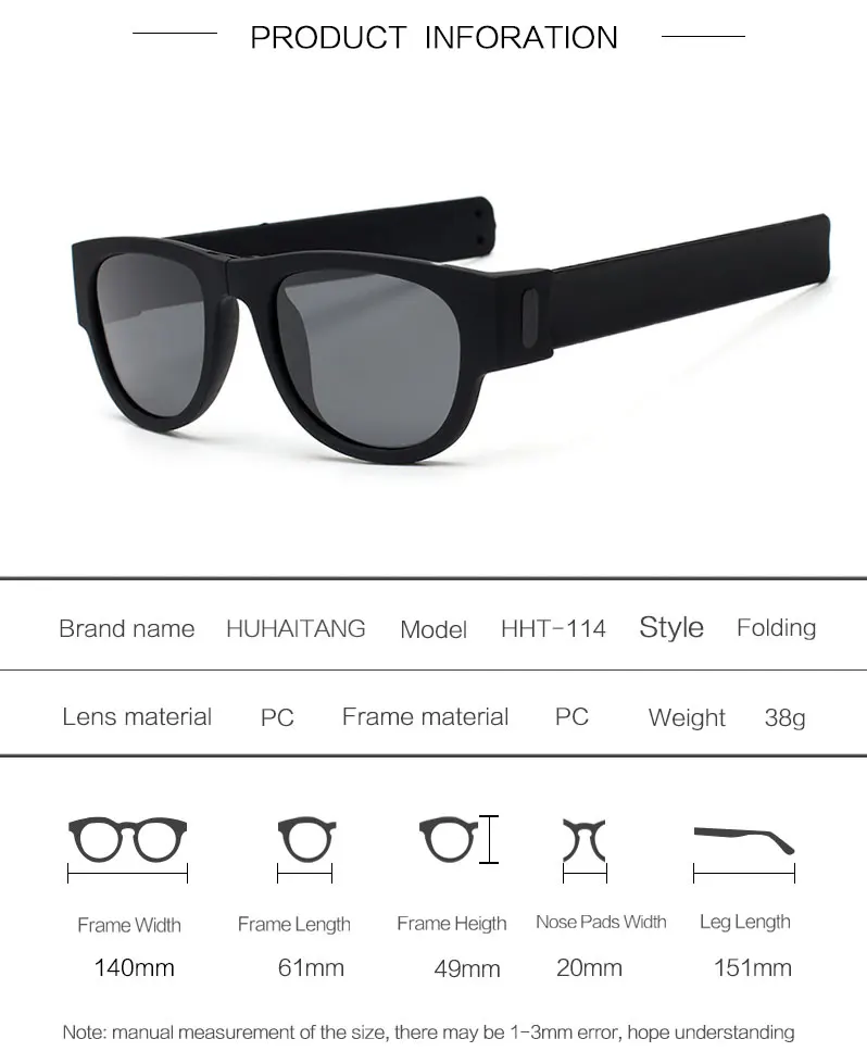 HUHAITANG Polarized Folding Slap Sunglasses Women Slappable Bracelet Men Sun Glasses For Female Wristband Fold Shades Eyewear