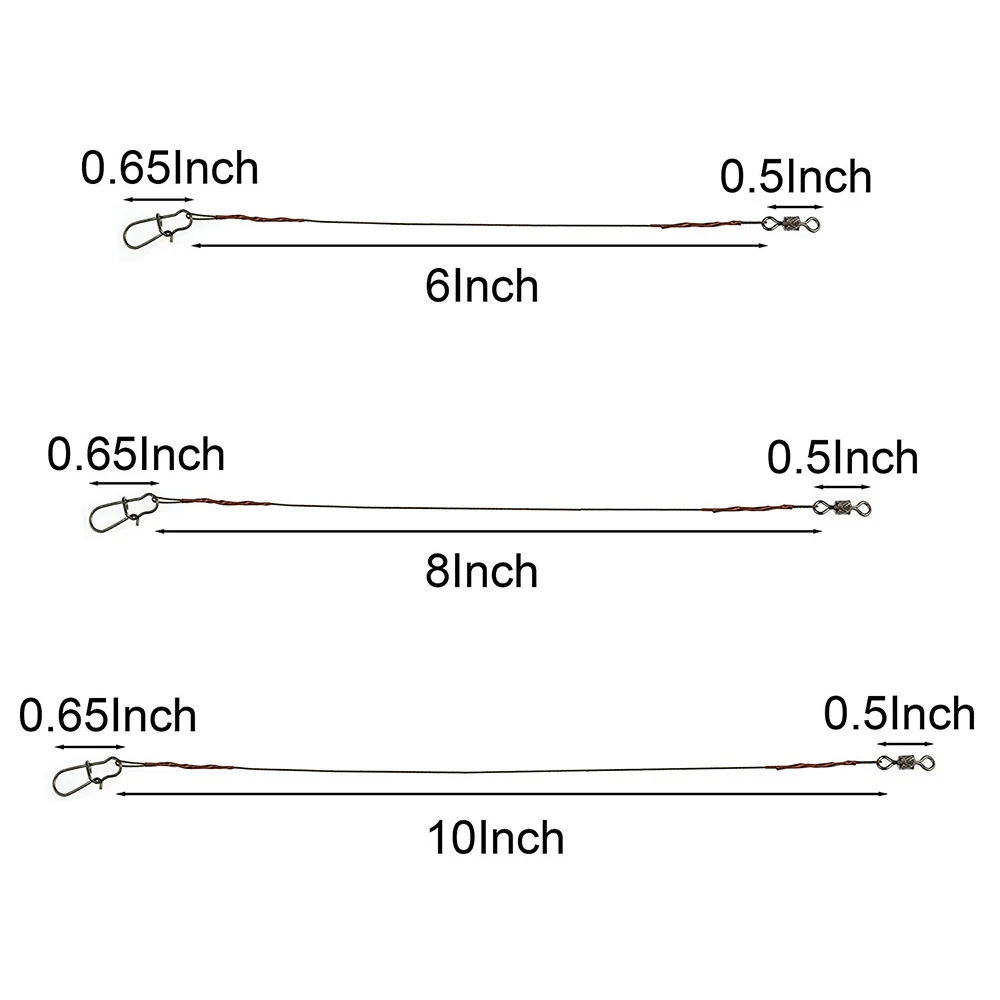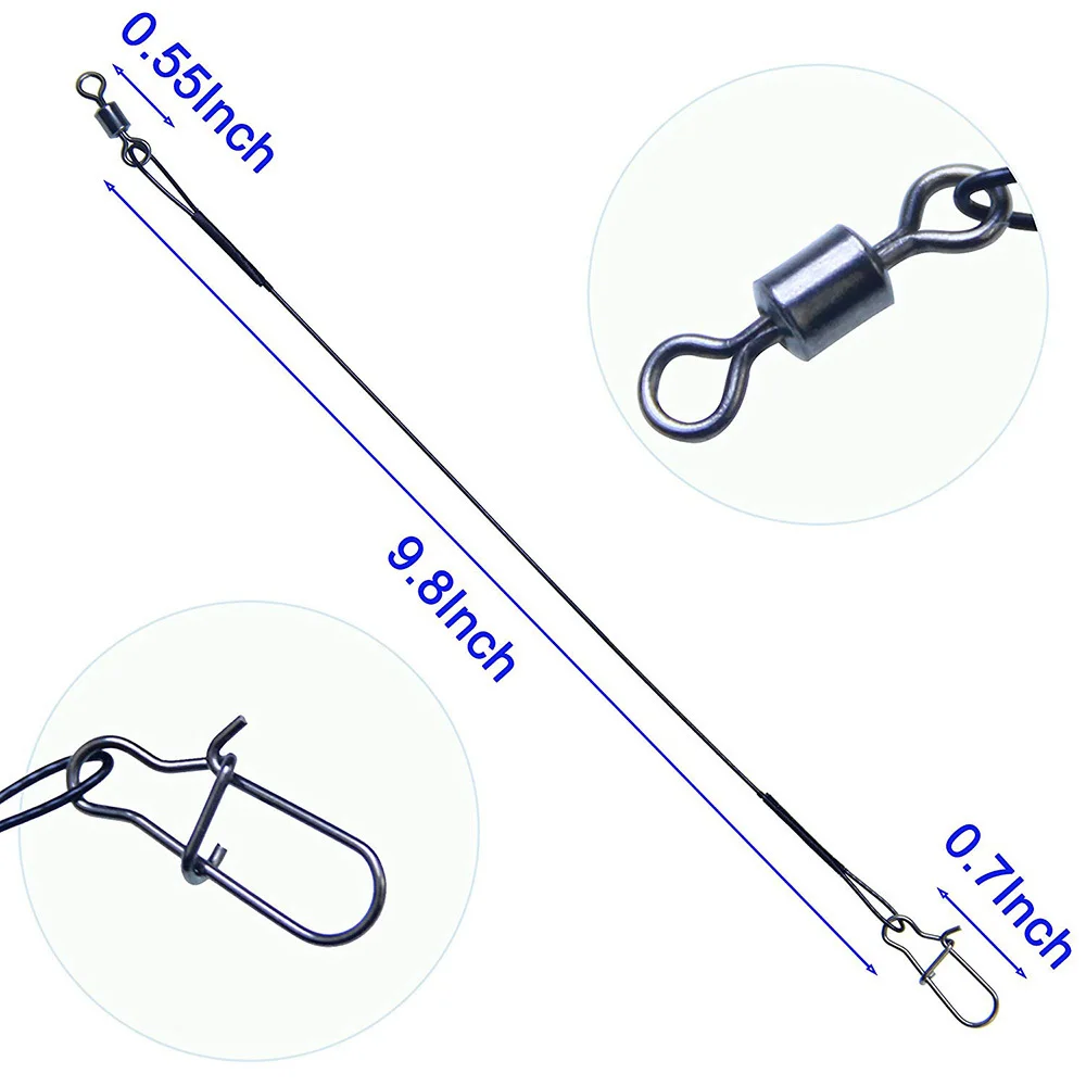 • Package included: 50pcs soft stainless steel fishing wire leader rigs,Length:25cm/9.84inch,Test:20lb-30lb,Strands:1×7,7×7