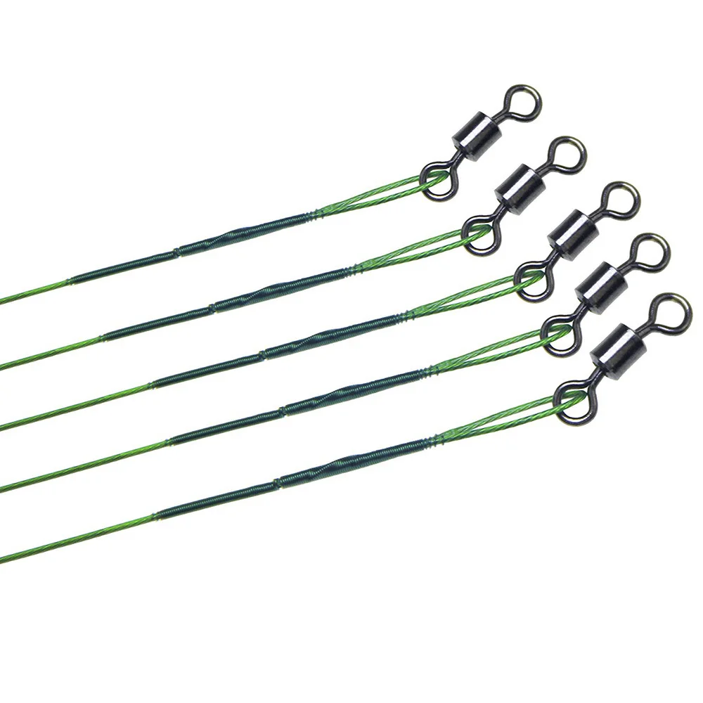 Hyaena 50pcs Black Green Brown Nylon Coated Steel Wire Leader Fishing Tippet With Nice Snap And Swivel Wire Rig Leaders