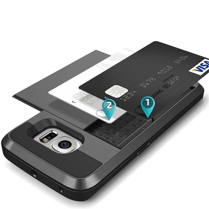 Hybrid Tough Card Storage Armor Phone Case For Samsung Galaxy S8 S9 Plus S6 S7 Edge S4 S5 A3 A5 A7 J3 J5 J7 2016 2017 Cover Capa