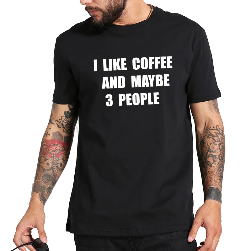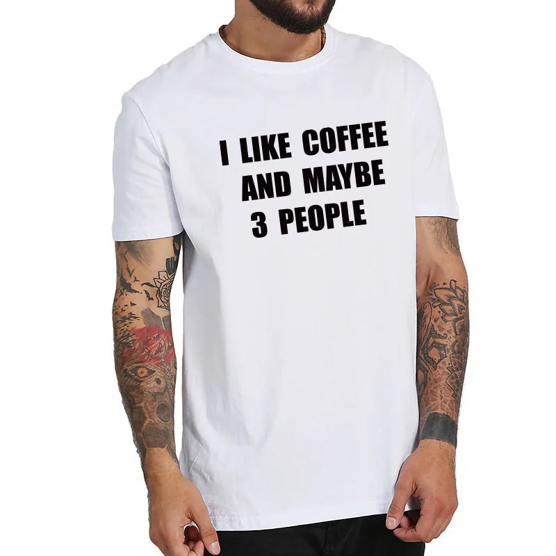 I Like Coffee And Maybe 3 People T shirt 100% Cotton Soft Camiseta Homme Originality Casual Novelty Shirts EU Size