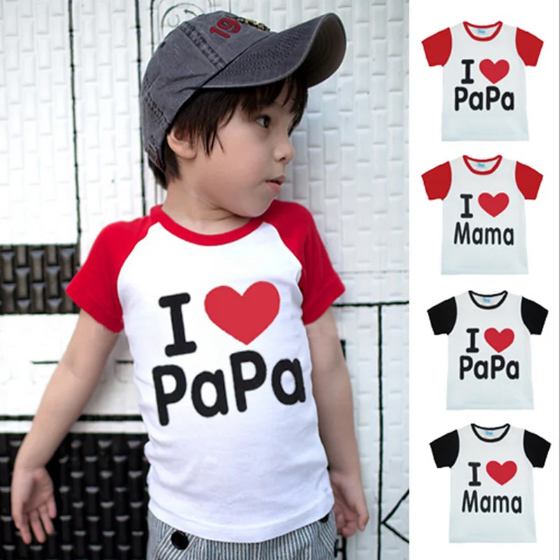 I Love Papa & Mama ,Spring Autumn Baby Kids 100% Cotton Shirts T-shirt Boys Girls Short Sleeve Tops Tees TST0019