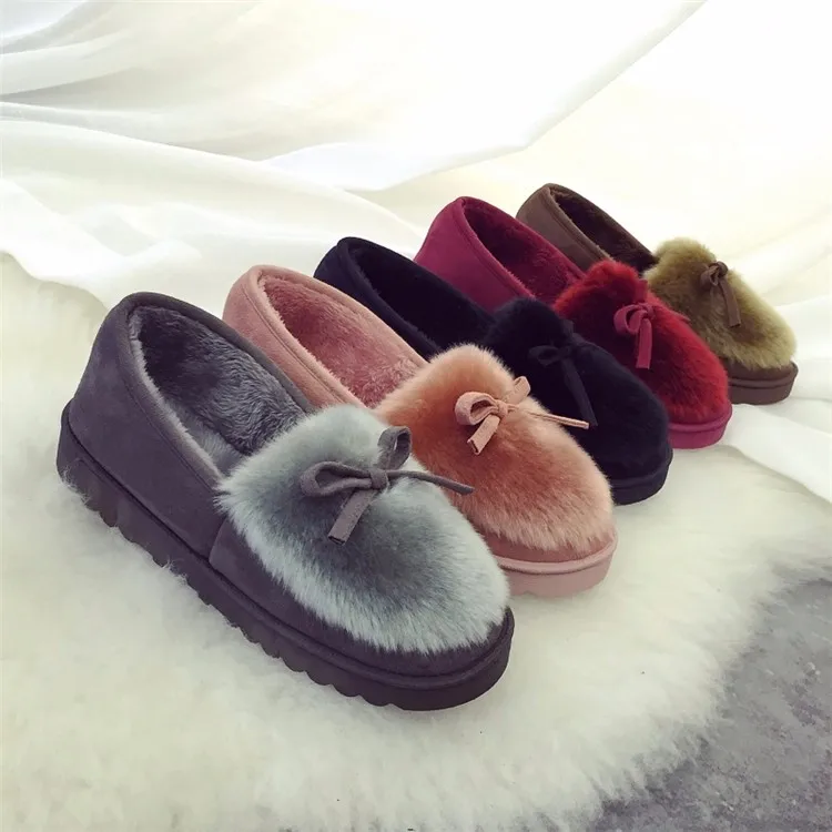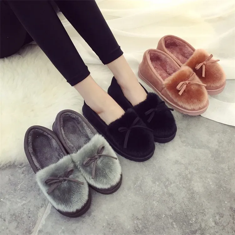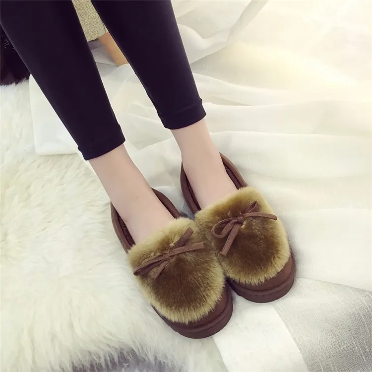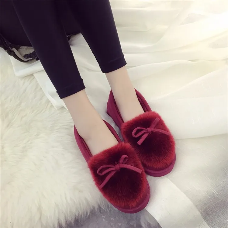 IAHEAD Brand Women Winter Shoes Warm Flock Flat Slip On Boots Shoes for Home use UPB81