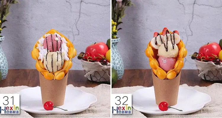 Model 1,2,3,4 is only egg waffle, no ice cream and filling ect