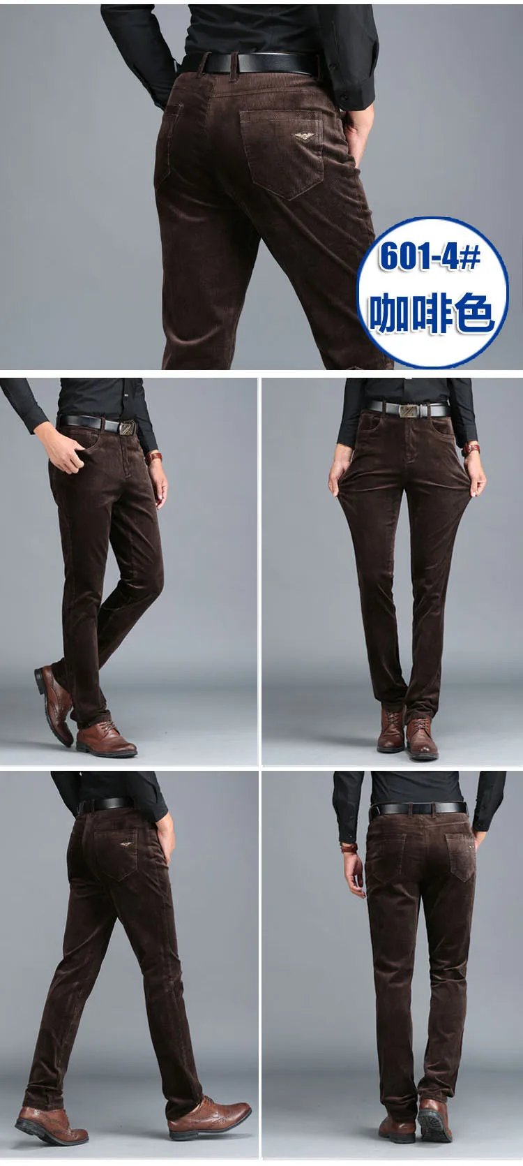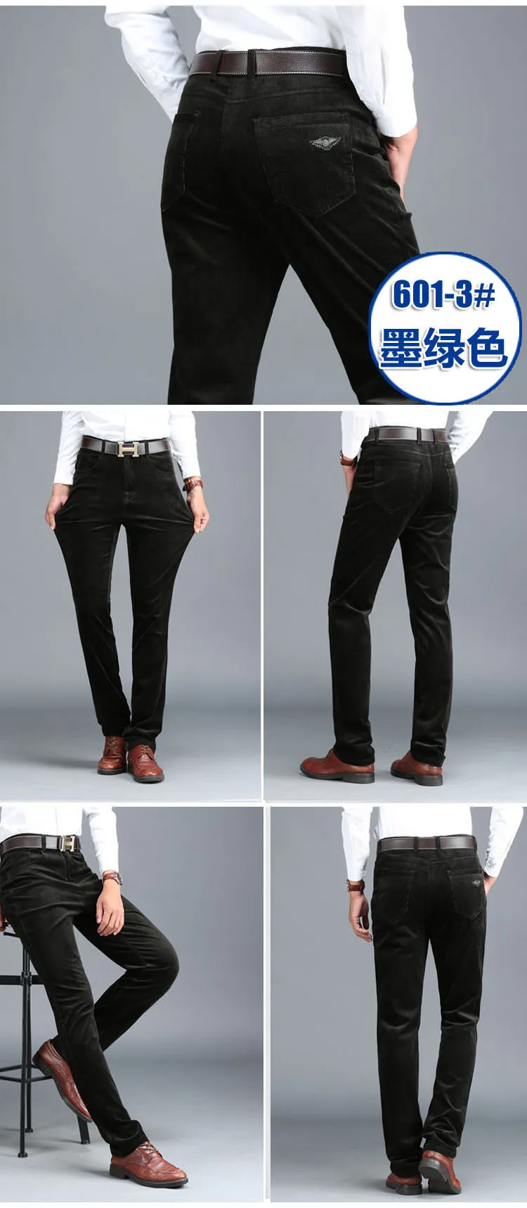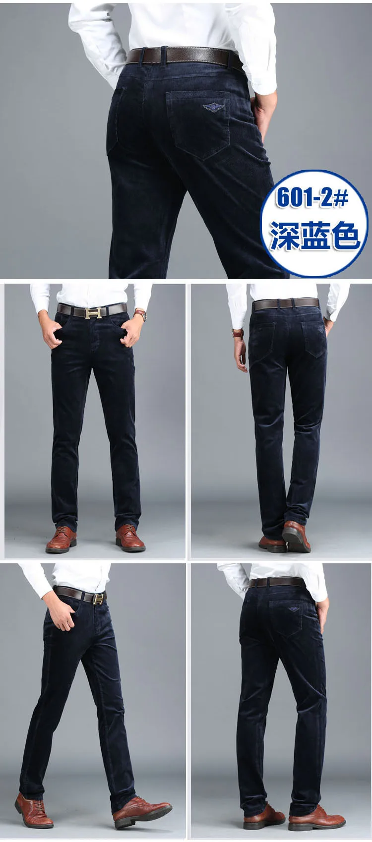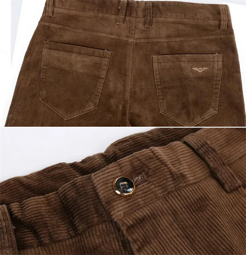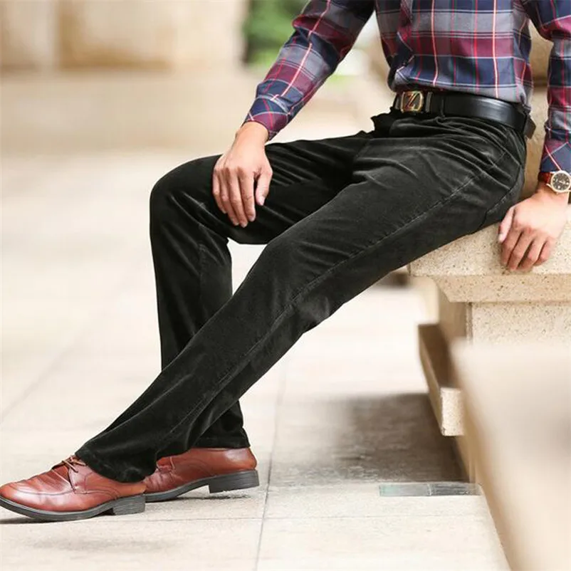 Corduroy Pants Men Winter Casual Pants 2018 Black Khaki Cotton Warm Straight Stretch Mens Thick Corduroy Trousers Big Size 40 42